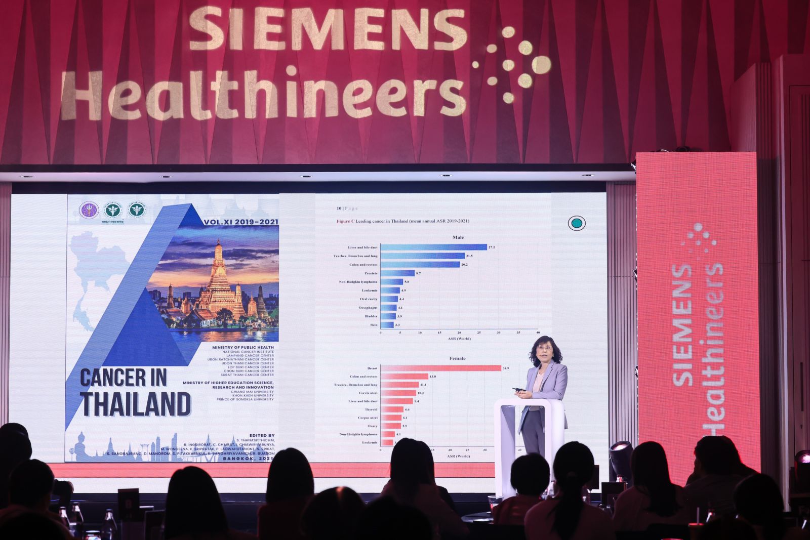 นายคริส พอเรย์ กรรมการผู้จัดการ ซีเมนส์ เฮลท์ธิเนียร์ส ประเทศไทย กล่าวว่า จากความท้าทายในการวินิจฉัยและรักษาโรคมะเร็งเต้านมล่าสุด ซีเมนส์ เฮลท์ธิเนียร์ส ได้เปิดตัวเครื่องเอกซเรย์เต้านม 3 มิติรุ่น ‘MAMMOMAT B.brilliant’ เป็นครั้งแรกในประเทศไทย โดยมาพร้อมเทคโนโลยี PlatinumTomo เพื่อการตรวจและวินิจฉัยที่แม่นยำ รวดเร็ว และมีประสิทธิภาพขึ้นโดยเฉพาะในระยะเริ่มแรก ผ่านฟีเจอร์สำคัญ ได้แก่ 50° Wide-Angle Tomosynthesis: การถ่ายภาพเอกซเรย์เต้านม 3 มิติ ด้วยมุมกว้าง 50 องศา ซึ่งเป็นองศาการสแกนที่กว้างที่สุดในตลาด ทำให้ได้ภาพเชิงลึกความละเอียดสูงและลดการทับซ้อนของภาพเนื้อเยื่อ ช่วยให้แพทย์มองเห็นรายละเอียดขนาดเล็กอย่างจุดหินปูนหรือก้อนเนื้อในเต้านมได้ชัดเจนยิ่งขึ้น Flying Focal Spot Tube: หลอดเอกซเรย์ที่เคลื่อนจุดโฟกัสได้อย่างรวดเร็ว และ ควบคุมให้หยุดคงที่เพื่อปล่อยรังสีได้อย่างมีประสิทธิภาพ เพิ่มรายละเอียดความคมชัดของภาพ โดยใช้ระยะเวลาการสแกนเพียง 5 วินาที ช่วยลดความรู้สึกไม่สบายตัวของผู้ป่วยจากการบีบอัดเต้านม PREMIA image reconstruction: เทคโนโลยีสร้างภาพทางการแพทย์จาก AI ช่วยเพิ่มความคมชัด รวมถึงลดสัญญาณรบกวนและความเบลอของภาพจากการเคลื่อนไหวของผู้ป่วย