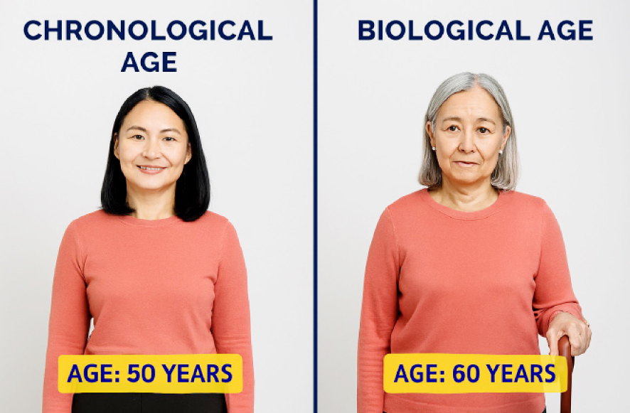 เราทุกคนต่างคุ้นเคยกับ "อายุจริง" (Chronological Age) ซึ่งนับตามปฏิทินตั้งแต่วันเกิด แต่ในโลกของวิทยาศาสตร์สุขภาพ ยังมีอีกหนึ่งมาตรวัดที่สำคัญยิ่งกว่า นั่นคือ "อายุชีวภาพ" (Biological Age) ซึ่งสะท้อนสภาวะความเสื่อมและความแข็งแรงของร่างกายอย่างแท้จริง อายุชีวภาพไม่ได้ถูกกำหนดโดยกาลเวลา แต่ขึ้นอยู่กับวิถีชีวิตและสามารถเปลี่ยนแปลงได้ บทความนี้จะพาไปสำรวจความแตกต่างและแนวทางในการชะลอวัยในระดับชีวภาพ