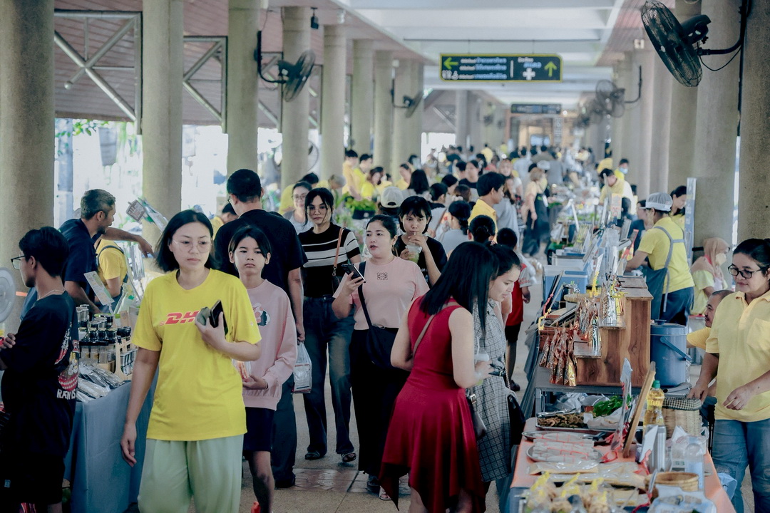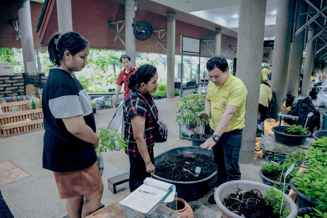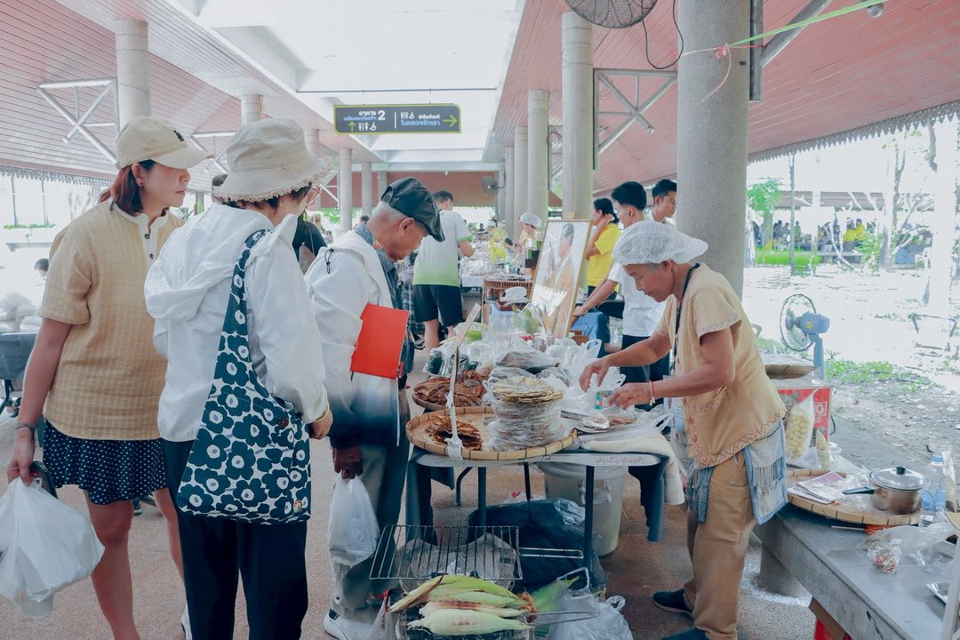 นิทรรศการ “สำรับไทยสุขภาพกายใจและลายผ้า” ซึ่งรวมองค์ความรู้เรื่องอาหารไทยที่เปี่ยมคุณค่าและสรรพคุณสมุนไพรพื้นบ้าน ถ่ายทอดภูมิปัญญาการปรุงสำรับอาหารที่ไม่เพียงอร่อย แต่ยังดีต่อสุขภาพ ทั้งเมนูอาหารไทยโบราณ อาหารพื้นถิ่น และเมนูสร้างสรรค์ที่ต่อยอดจากภูมิปัญญาเดิม พร้อมกิจกรรมสาธิต “ครัวไทยพอเพียง” ให้ผู้เข้าชมได้เรียนรู้การเลือกวัตถุดิบปลอดภัยจากเกษตรอินทรีย์ เพื่อสร้างสุขภาวะกายใจอย่างยั่งยืน และต่อด้วยนิทรรศการ “วิถีสายน้ำ ภูมิปัญญาผ้าไทย” ถ่ายทอดเรื่องราวของสายน้ำในฐานะแหล่งชีวิตและความมั่นคงของชุมชน ผ่านสององค์ความรู้สำคัญของภูมิปัญญาท้องถิ่นไทย ได้แก่ การแปรรูปปลา และ ศิลปะผ้าย้อมธรรมชาติ ซึ่งผู้มาเข้าชมงานจะได้เรียนรู้วิถีชีวิตของชุมชนที่พึ่งพิงทรัพยากรธรรมชาติ ทั้งการจับปลา การถนอมอาหาร การสร้างรายได้จากผลิตภัณฑ์ปลา ตลอดจนการย้อมสีผ้าด้วยวัสดุธรรมชาติจากพืชท้องถิ่น ซึ่งผ้าแต่ละผืนสะท้อนอัตลักษณ์ของชุมชนและความคิดสร้างสรรค์ที่ผสานกับธรรมชาติอย่างงดงาม ในด้าน “ภูมิปัญญาผ้าไทย” ถ่ายทอดเรื่องราวของผ้าไทยในฐานะมรดกภูมิปัญญาอันล้ำค่า ผ่านลวดลาย สีสัน และเทคนิคการทอที่แสดงถึงเอกลักษณ์ของแต่ละภูมิภาค พร้อมกิจกรรมสาธิตการย้อมผ้า การสกรีนลายลงผืนผ้า และการประยุกต์ผ้าไทยให้เข้ากับการใช้ชีวิตประจำวันอย่างสร้างสรรค์