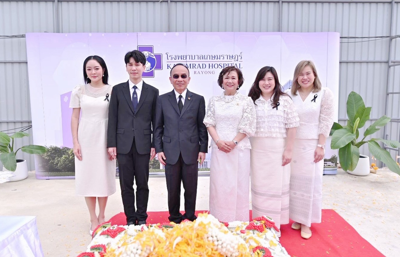 ในพิธีดังกล่าวได้รับเกียรติจาก พระเทพสิทธิเวที เจ้าคณะจังหวัดระยอง เป็นประธานในพิธี นำโดยคณะผู้บริหาร ศ.ดร.นพ.เฉลิม หาญพาณิชย์ กรรมการบริษัท ประธานกรรมการบริหาร และประธานเจ้าหน้าที่บริหาร, ผศ.ดร.พญ.สมพร หาญพาณิชย์ ประธานกรรมการบริษัทและรองประธานเจ้าหน้าที่บริหาร, พญ.พรลักษณ์ หาญพาณิชย์ รองกรรมการผู้จัดการฝ่ายปฏิบัติการ, กันตพร หาญพาณิชย์ รองกรรมการผู้จัดการฝ่ายการตลาด, พรสุดา หาญพาณิชย์ C.P.S. รองกรรมการผู้จัดการฝ่ายการเงิน, พินิจ หาญพาณิชย์ กรรมการ, แก้มบุ๋ม- ปรียาดา สิทธาไชย และ ทพญ.กนกรัสม์ ฉันทแดนสุวรรณ กรรมการบริษัทในเครือ พร้อมทั้ง ได้รับเกียรติจาก กัฬชัย เทพวรชัย รองผู้ว่าราชการจังหวัดระยอง, สาธิต ปิตุเตชะ อดีตรัฐมนตรีช่วยว่าการกระทรวงสาธารณสุข, ปิยะ ปิตุเตชะ นายกองค์การบริหารส่วนจังหวัดระยอง, นพ.สุรวิทย์ ศักดานุภาพ นายแพทย์สาธารณสุขจังหวัดระยอง, บุญยืน เลาหวิทยะรัตน์ เลขาธิการหอการค้าจังหวัดระยอง และแขกผู้มีเกียรติอีกมากมายร่วมเป็นเกียรติในพิธี ณ บริเวณพื้นที่ก่อสร้างโรงพยาบาล