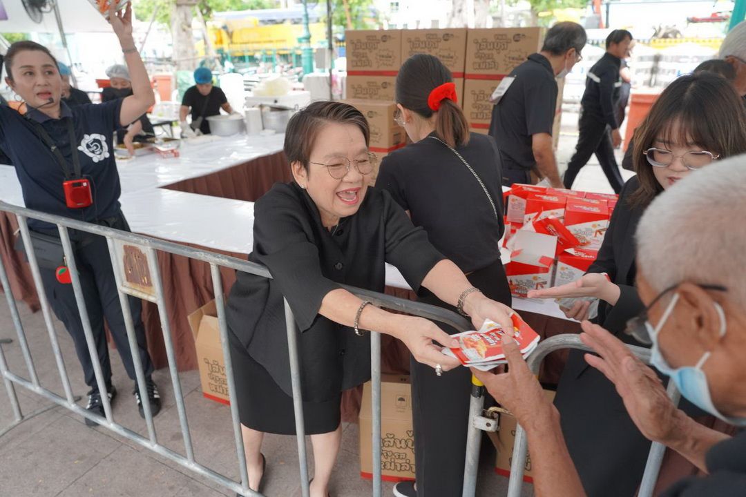 หลังจากนั้น ทางมูลนิธิฯ ได้ลงพื้นที่บริเวณท้องสนามหลวง จัดเลี้ยงอาหารและน้ำดื่มแก่ประชาชนที่เดินทางมาถวายสักการะพระบรมศพ สมเด็จพระนางเจ้าสิริกิติ์ พระบรมราชินีนาถ พระบรมราชชนนีพันปีหลวง ณ ศาลาสหทัยสมาคม เพื่อร่วมแสดงความจงรักภักดี