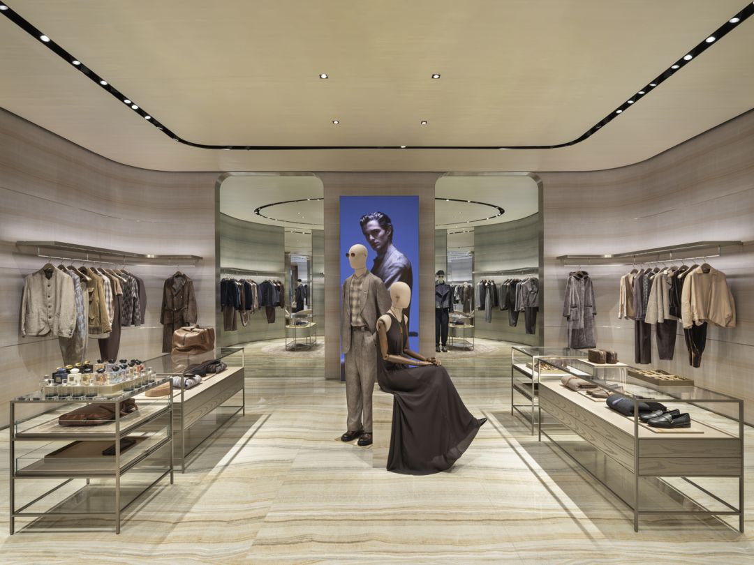 บูติก Giorgio Armani แห่งใหม่ มาพร้อมพื้นที่กว่า 475 ตารางเมตร บนชั้นเดียวที่มีการตกแต่งตีความใหม่ สะท้อนบรรยากาศเฉพาะของศูนย์การค้า โดยยังคงเอกลักษณ์เหนือกาลเวลาของ Giorgio Armani ไว้ครบถ้วน ภายนอกโดดเด่นด้วยฟาซาดยาวโอบล้อมสี่ด้าน ผสานพื้นผิวผ้าไหมเรืองแสงสลับกระจกโปร่งโค้งเว้า เกิดเป็นสถาปัตยกรรมที่พลิ้วไหว สง่างามและมีชีวิตชีวา ยิ่งเมื่อสองด้านที่หันรับโถงสูงสองชั้น ประดับจอวิดีโอขนาดใหญ่ ก็ยิ่งดึงดูดทุกสายตาที่เดินผ่าน