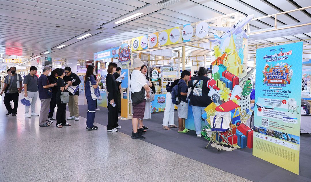 และอีกหนึ่งกิจกรรมที่ไม่พูดถึงไม่ได้เลยคือ “MRT JOURNEY OF HAPPINESS 2025 เที่ยวสุขใจ...ไปกับ MRT” มหกรรมการท่องเที่ยวสุดยิ่งใหญ่ที่เกิดขึ้น “ใจกลางสถานีรถไฟฟ้า MRT” โดยความร่วมมือของ บริษัท แบงคอก เมโทร เน็ทเวิร์คส์ จำกัด (BMN) และ บริ ษัท ทางด่วนและรถไฟฟ้ากรุงเทพ จำกัด (มหาชน) หรือ BEM พร้อมพันธมิตรท่องเที่ยวชั้นนำทั่วไทย อาทิ สมาคมส่งเสริมธุรกิจท่องเที่ยวไทย (สธทท.), GO Hotel,บางกอกแอร์เวย์ ร่วมสร้างแลนด์มาร์กแห่งความสุขที่ตั้งใจยกระดับพื้นที่ Metro Mall สถานี MRT สวนจตุ จักรให้กลายเป็นจุดหมายใหม่ของนักเดินทาง โดยจัดขึ้นระหว่างวันที่ 30 ตุลาคม – 2 พฤศจิกายน 2568 เพื่อชูแนวคิด “เดินทาง–ใช้ชีวิต–ท่องเที่ยว” ครบจบในที่เดียว