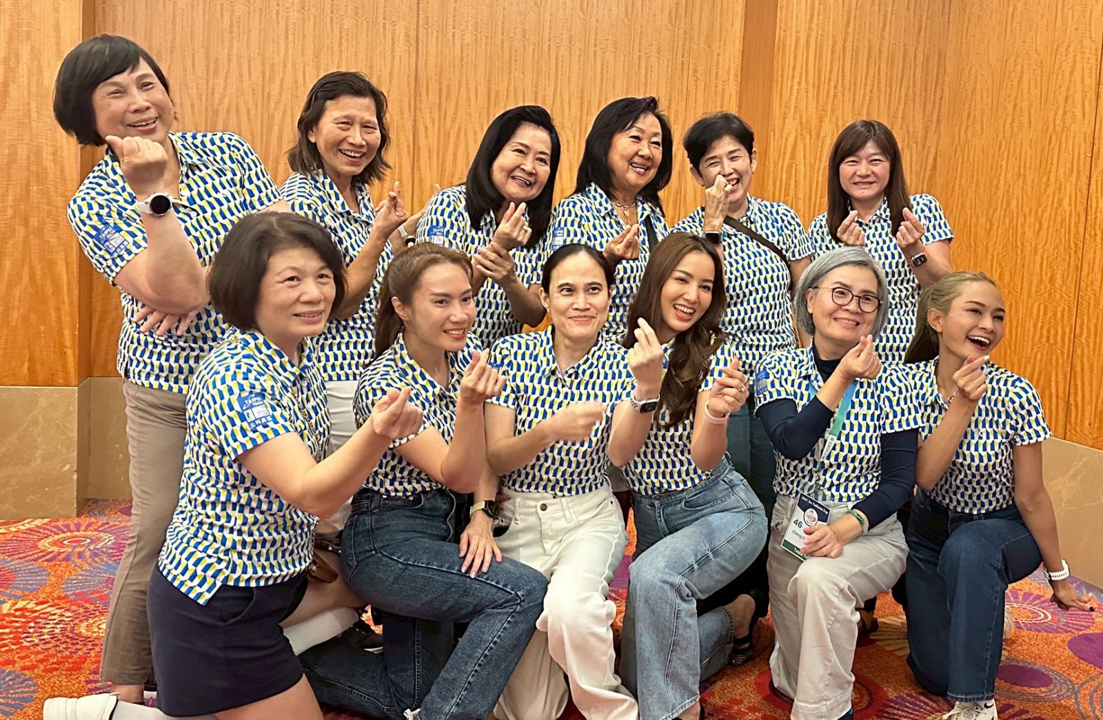 .jpg) เชาวรัตน์ เชาว์ชวานิล, พูนศรี วิริยะเสถียร, เอมอร โศภิษฐ์พงศธร และทีมเจ้าภาพ