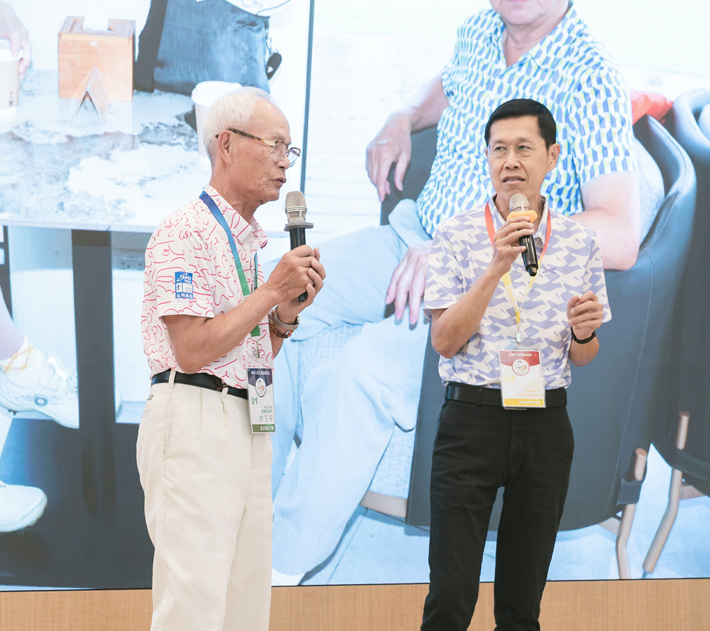 Hung San Ping นายกผู้ก่อตั้งสมาคมนักศึกษาเก่าไทเป เทค และ พงศ์เทพ เทพกาญจนา นายกสมาคมธรรมศาสตร์ฯ กล่าวต้อนรับนักกีฬาทั้งสองสถาบัน