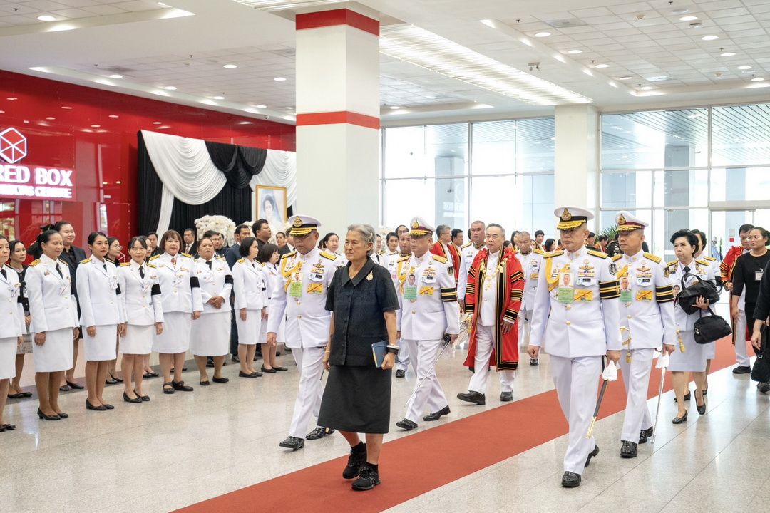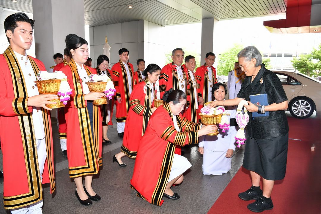 การนี้ ศาสตราจารย์ ดร.ธีรวุฒิ บุณยโสภณ นายกสภามหาวิทยาลัย พร้อมด้วยศาสตราจารย์ ดร.ธานินทร์ ศิลป์จารุ อธิการบดี คุณภรณี ลีนุตพงษ์ และ ดร.วินัย สารสุวรรณ กรรมการสภามหาวิทยาลัยผู้ทรงคุณวุฒิ คณะผู้บริหาร บุคลากร และนักศึกษามหาวิทยาลัยเทคโนโลยีพระจอมเกล้าพระนครเหนือ (มจพ.) เฝ้าฯ รับเสด็จ