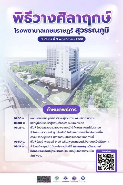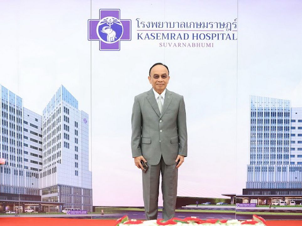 ศ.ดร.นพ.เฉลิม หาญพาณิชย์ ประธานเจ้าหน้าที่บริหาร บริษัท บางกอกเชน ฮอสปิทอล จำกัด(มหาชน) ทำพิธีวางศิลาฤกษ์ รพ.เกษมราษฎร์ สุวรรณภูมิ