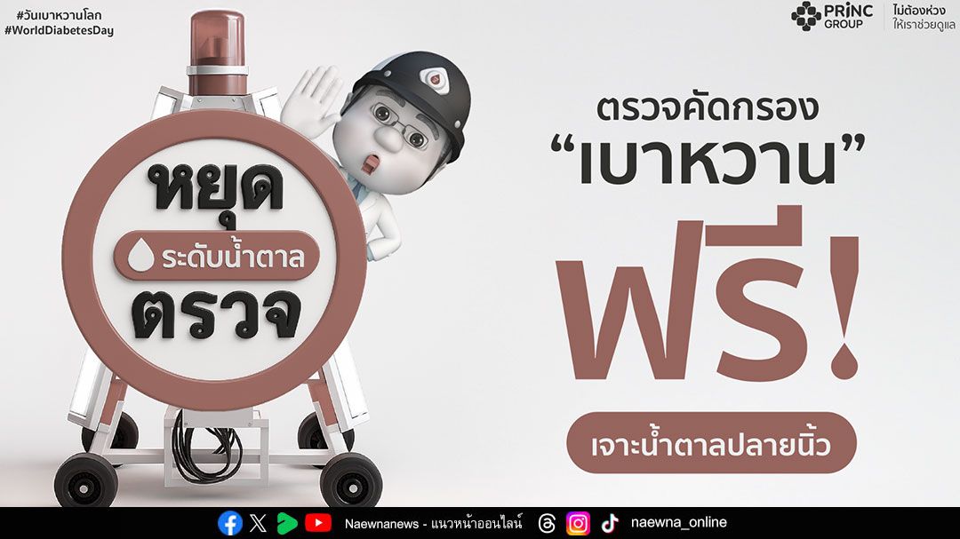 PRINC Group ขอเชิญชวนประชาชนผู้สนใจเข้ารับบริการ ‘ตรวจคัดกรองเบาหวานฟรี’ สอบถามข้อมูลเพิ่มเติมได้ที่โรงพยาบาลเครือพริ้นซ์ใกล้บ้านท่าน หรือติด ตามข้อมูลข่าวสารได้ทางเว็บไซต์ www.princgroup.com