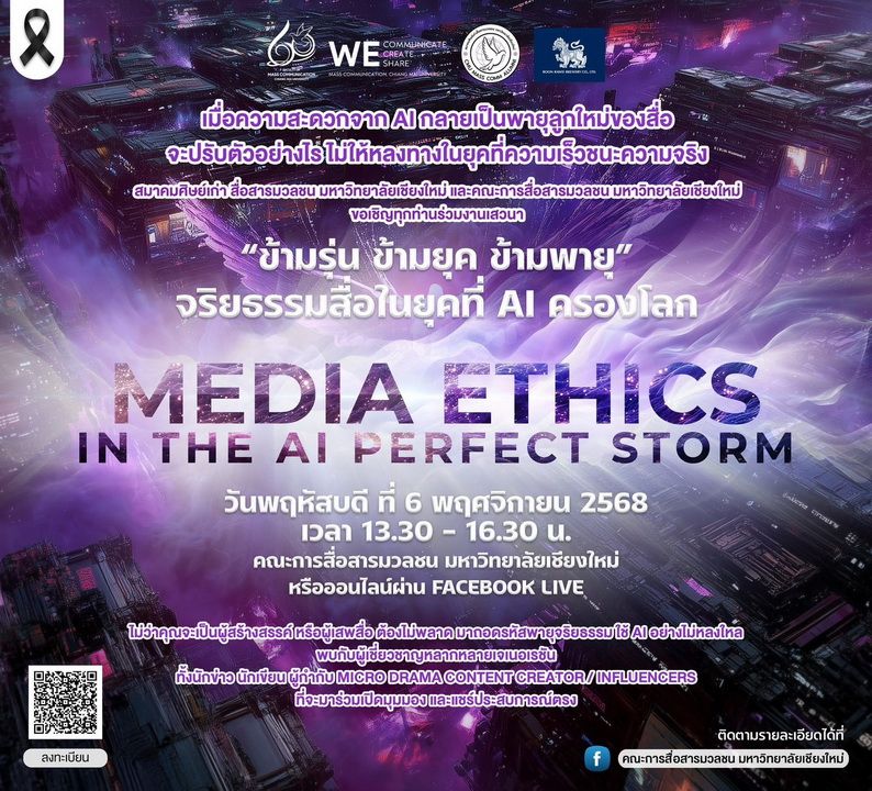 ในยุคที่ AI (ปัญญาประดิษฐ์) เข้ามาเปลี่ยนสังคมและภูมิทัศน์ของวงการสื่ออย่างรวดเร็วและรุนแรง ประเด็นเรื่อง "จริยธรรมสื่อ" กำลังเป็นที่จับตาและถูกถกเถียงอย่างกว้างขวางทั่วโลกรวมถึงประเทศไทย ซึ่งควบคู่กับการแสวงหา "โอกาส" ใหม่ ๆ ความฉลาดล้ำยุคของ AI ยังได้กลายเป็นความเสี่ยงและ "ภัยคุกคาม" โดยเฉพาะจากการสร้างข้อมูลเท็จแบบ Deepfake ที่แยกแทบไม่ออกว่า “จริง” หรือ “ปลอม” ขณะที่ปัจจุบันมนุษย์ให้ค่า “ความเร็ว” ในการผลิตสื่อและเสพสื่อมากกว่า”ความจริง” และ “ความถูกต้อง” จึงเป็นความท้าทายของวงการสื่อสารมวลชนของไทย ทั้งด้านการปรับตัว ความอยู่รอด ความพร้อมในการแสดงความรับผิดชอบต่อสังคมจากการสื่อสารฯ รวมถึงประเด็นจริยธรรม ว่าอะไรคือแนวทาง แนวปฏิบัติทางด้านจริยธรรม และใครจะต้องมีความรับผิดชอบสูงสุด AI? หรือ มนุษย์?