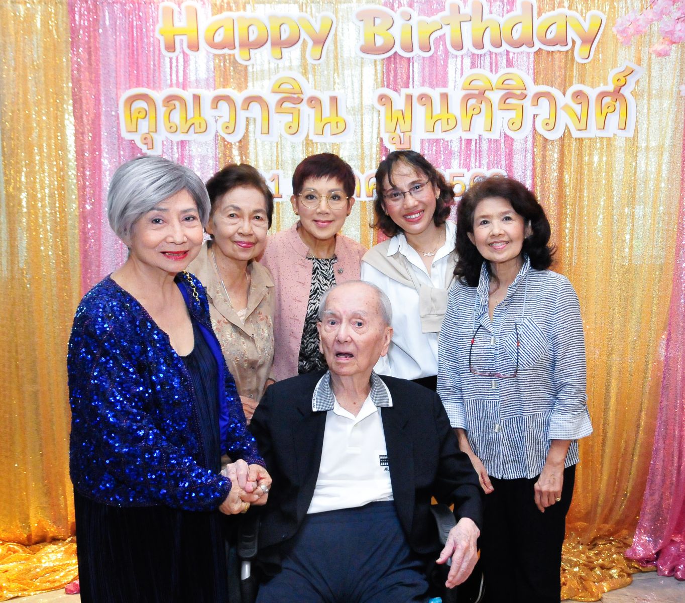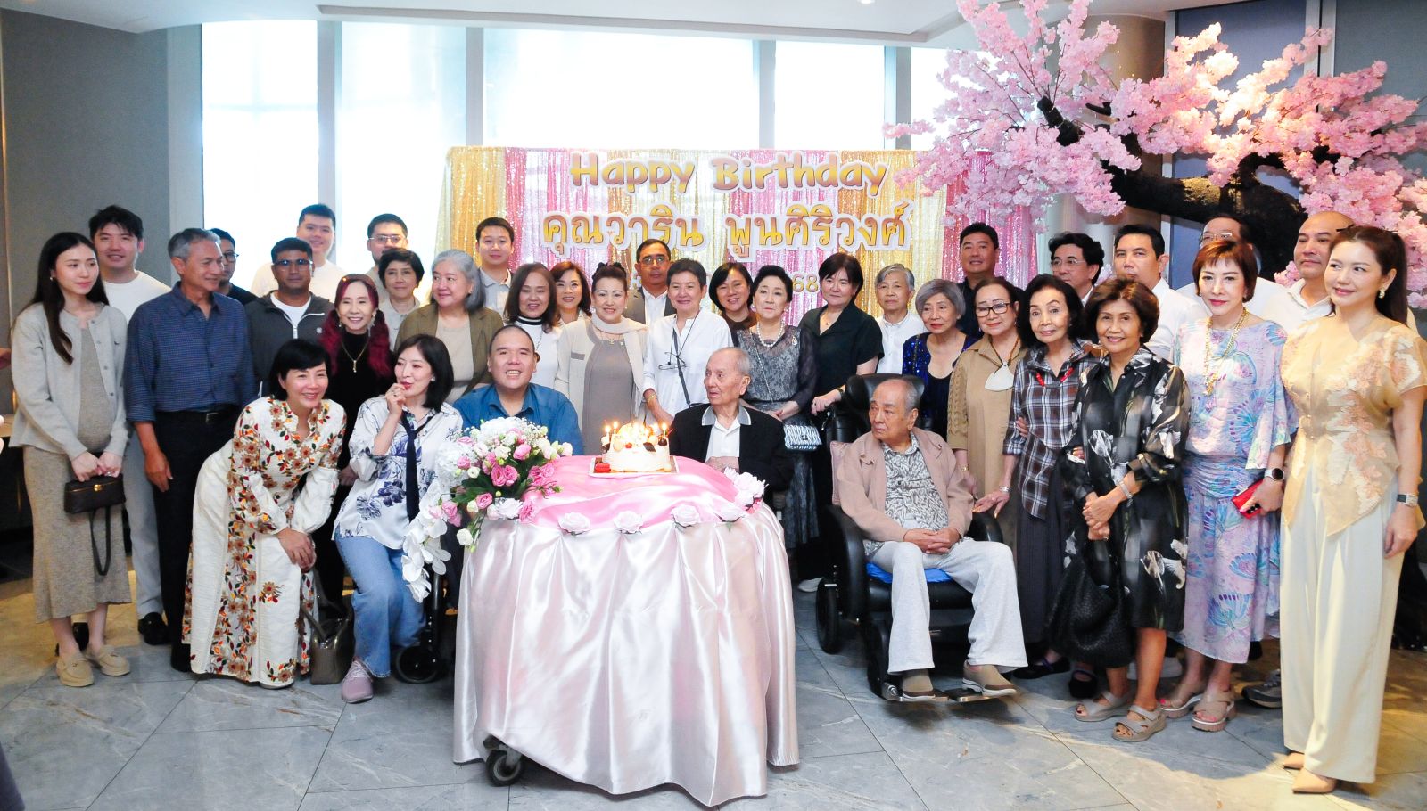 งานฉลองวันเกิด 93 ปี วาริน พูนศิริวงศ์ ปีนี้ ยังนับเป็นงานรวมญาติครั้งใหญ่ นำมาโดย น้องชาย สินธุ – เตือนใจ พูนศิริวงศ์, น้องสาว 2 คน ประทุม รัตนาวดี และ พรประไพ ประเสริฐศรี ร่วมด้วยน้องสะใภ้ พัชรินทร์ พูนศิริวงศ์ เครือญาติใกล้ชิด ทิพยาภรณ์ พงษ์โสภณ, เลิศชาย-นิรัชฎา พงษ์โสภณ และหลานๆ มาร่วมอวยพรคุณปู่ คุณตา อย่างพร้อมเพรียง ในงานยังมี อัศวิน อิงคกุล ประธานมิราเคิล กรุ๊ป มาให้การต้อนรับและอวยพรวันเกิดเจ้าภาพ ในส่วนหนังสือพิมพ์แนวหน้า นำโดย อัญชะลี ไพรีรักษ์ ผู้อำนวยการข่าว นำทีมกองบรรณาธิการและตัวแทนพนักงาน อวยพรวันเกิดนายวิริน ซึ่งบรรยากาศเต็มไปด้วยความสุขและรอยยิ้มของเจ้าของวันเกิดและผู้มาร่วมงาน