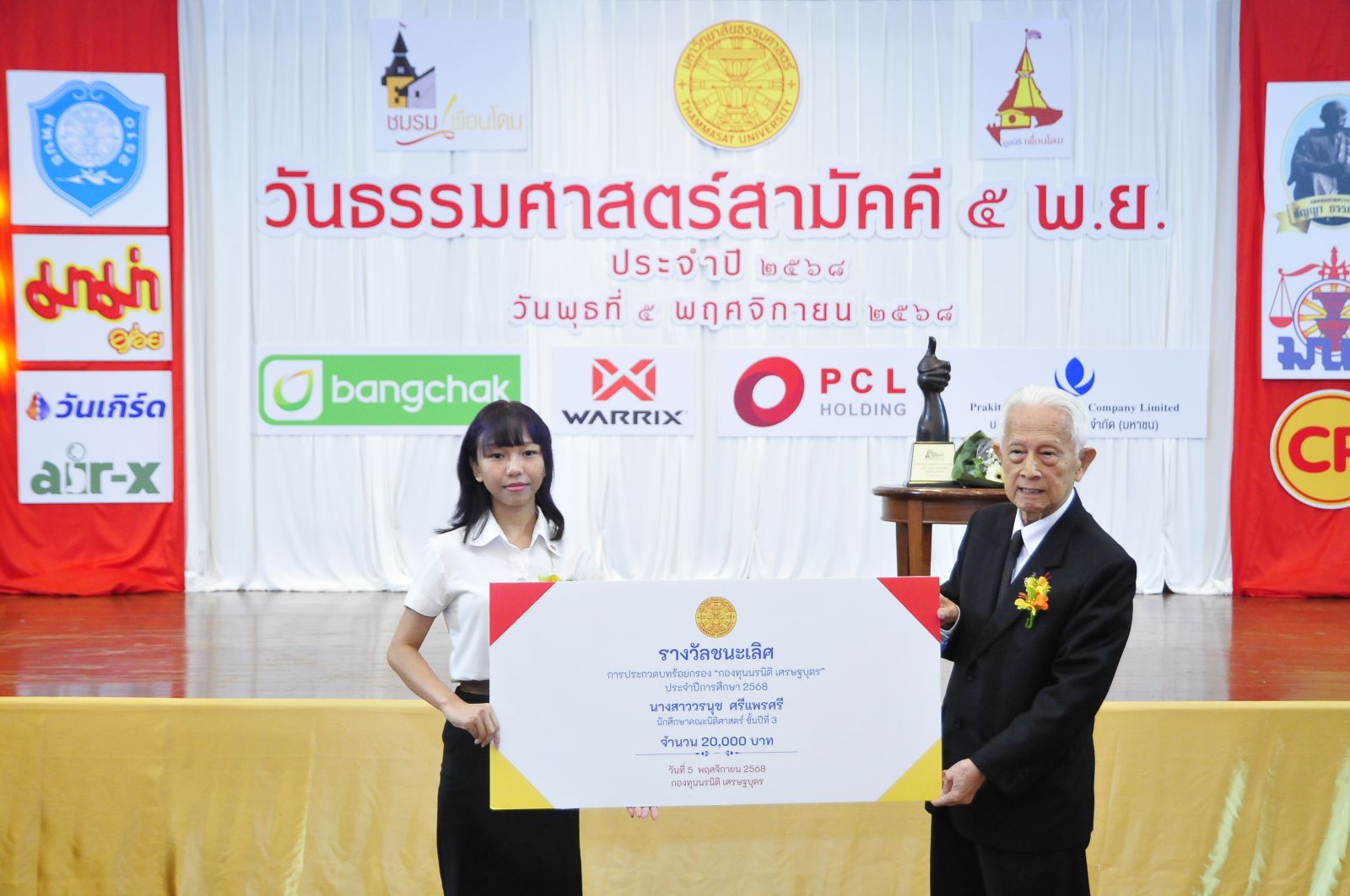 นอกจากนี้ยังมีการมอบรางวัล “เข็มเกียรติยศวันธรรมศาสตร์สามัคคี ประจำปี 2568” ให้แก่ศิษย์เก่าธรรมศาสตร์ซึ่งผู้ได้รับรางวัลได้แก่ ดร.เอกนิติ นิติทัณฑ์ประภาศ รองนายกรัฐมนตรีและรัฐมนตรีว่าการกระทรวงการคลัง คณะเศรษฐศาสตร์, ศุภจี สุธรรมพันธุ์ รัฐมนตรีว่าการกระทรวงพาณิชย์ คณะสังคมวิทยาและมานุษยวิทยา, สันติ ปิยะทัต รัฐมนตรีประจำสำนักนายกรัฐมนตรี คณะนิติศาสตร์, องอาจ วงษ์ประยูร รัฐมนตรีช่วยว่าการกระทรวงศึกษาธิการ คณะนิติศาสตร์, อิทธิพร แก้วทิพย์ อัยการสูงสุด คณะนิติศาสตร์, วุฒิพงศ์ วิบูลย์วงศ์ ประธานคณะกรรมการอัยการ คณะนิติศาสตร์, วิทัย รัตนากร ผู้ว่าการธนาคารแห่งประเทศไทย คณะเศรษฐศาสตร์, วิณะโรจน์ ทรัยพ์ส่งสุข ปลัดกระทรวงเกษตรและสหกรณ์ฯ คณะรัฐศาสตร์, ดร.เกล็ดนที มโนสันติ์ กรรมการตรวจเงินแผ่นดิน คณะนิติศาสตร์, พรพิมล นิลทจันทร์ กรรมการตรวจเงินแผ่นดิน คณะสังคมสงเคราะห์ศาสตร์, รศ.ดร.สุปาณี พัดทอง นายกสมาคมนักกลอนแห่งประเทศไทย คณะศิลปะศาสตร์, วันชัย ตันติวิทยาพิทักษ์ ผู้อำนวยการสถานีโทรทัศน์ Thai PBS คณะศิลปะศาสตร์และ เจตน์ สถาวรศีลพร