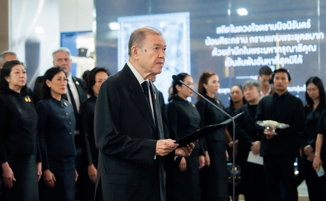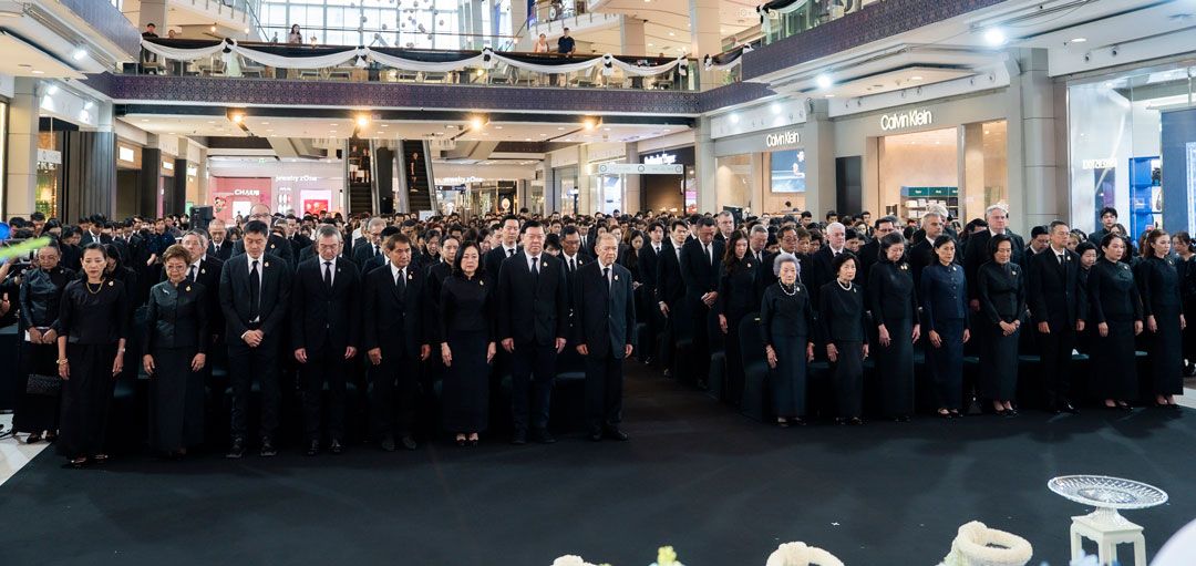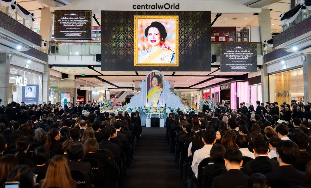 พิธีถวายความอาลัยจัดขึ้น ณ ลานอีเดน ชั้น 1 ศูนย์การค้าเซ็นทรัลเวิลด์ เมื่อวันที่ 30 ตุลาคม ที่ผ่านมา โดยมี มุกดา จิราธิวัฒน์ ประธานในพิธี พร้อมด้วย ดร.ศุภชัย พานิชภักดิ์ และ พิชัย จิราธิวัฒน์ นำกล่าวน้อมถวายความอาลัย พร้อมเชิญผู้ร่วมพิธียืนสงบนิ่งเป็นเวลา 93 วินาที เพื่อรำลึกถึงพระมหากรุณาธิคุณอย่างหาที่สุดมิได้ จากนั้นประธานในพิธีและคณะผู้บริหารได้วางพวงมาลัยถวายความอาลัย ตามด้วยพนักงานกลุ่มเซ็นทรัลจากทุกหน่วยงานร่วมวางดอกมะลิ บริเวณเบื้องหน้าพระฉายาลักษณ์เพื่อแสดงความอาลัยอย่างสุดซึ้งและน้อมสำนึกในพระมหา กรุณาธิคุณอันหาที่สุดมิได้