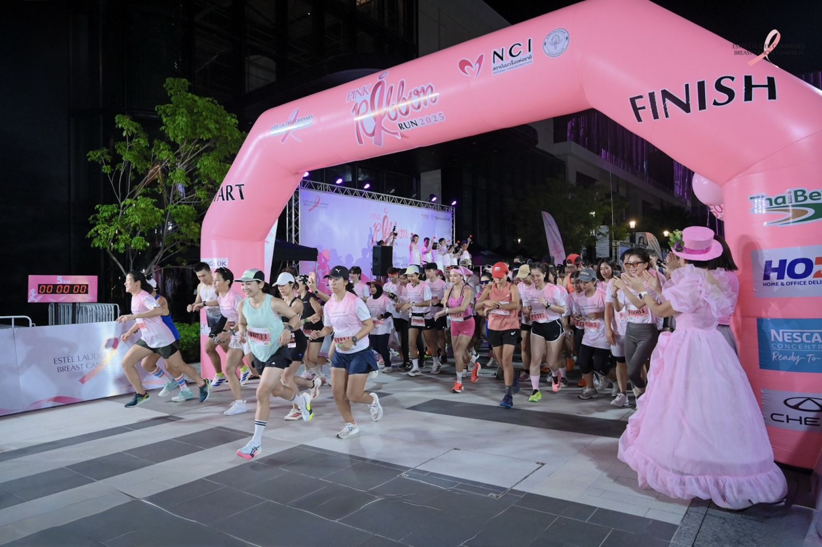 Pink Ribbon Run 2025 เกิดจากความร่วมมือของ เอสเต ลอเดอร์ คอมพานีส์ ประเทศไทย สถาบันมะเร็งแห่งชาติ และ โครงการ วัน แบงค็อก (One Bangkok) เพื่อเปลี่ยนสัญลักษณ์ “โบว์สีชมพู” ให้กลายเป็นพลังที่จับต้องได้ผ่านกิจกรรมวิ่งการกุศลกลางมหานครกรุงเทพฯ บรรยากาศในวันงาน นักวิ่งจำนวนมากกว่า 1,300 คน ได้มาออกสตาร์ตพร้อมกันตั้งแต่เช้าตรู่ เติมสีสันให้กับย่านถนนวิทยุด้วยการตกแต่งริบบิ้นสีชมพูเพื่อส่งมอบกำลังใจซึ่งกันและกันตลอดเส้นทาง สะท้อนเจตนารมณ์งาน Pink Ribbon Run 2025 ว่านี่ไม่ใช่แค่งานวิ่งเพื่อสุขภาพ แต่คือสัญลักษณ์ของการส่งต่อความห่วงใยและความหวัง พร้อมตอกย้ำความสำคัญของการดูแลตัวเองเพื่อหยุดยั้งมะเร็งเต้านม (Time to End Breast Cancer) หลังจบงาน คณะผู้จัดงานยังนำรายได้จากค่าสมัครทั้งหมด 100% โดยไม่หักค่าใช้จ่าย รวมกว่า 1.2 ล้านบาท มอบแก่สถาบันมะเร็งแห่งชาติ สำหรับจัดซื้ออุปกรณ์ทางการแพทย์และช่วยเหลือผู้ป่วยมะเร็งเต้านมในประเทศไทย