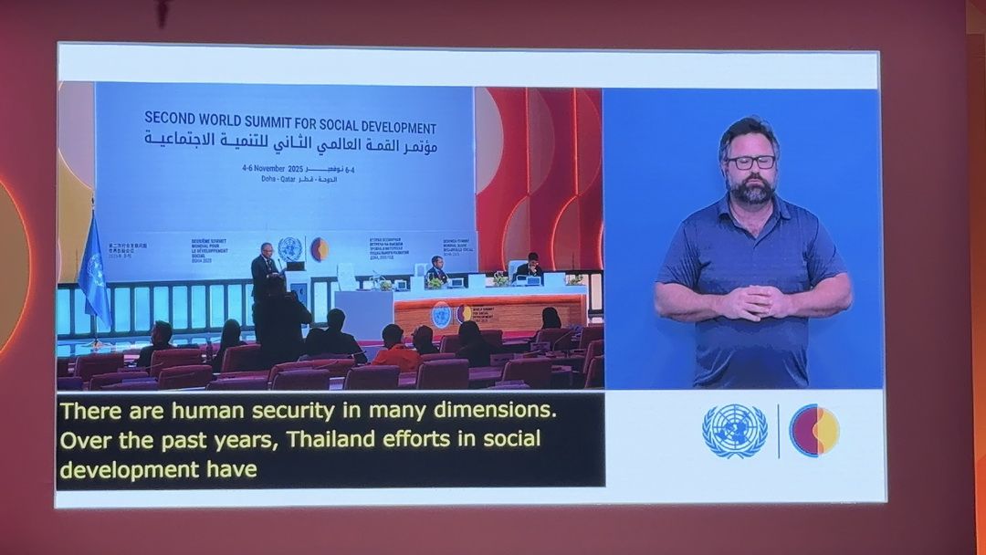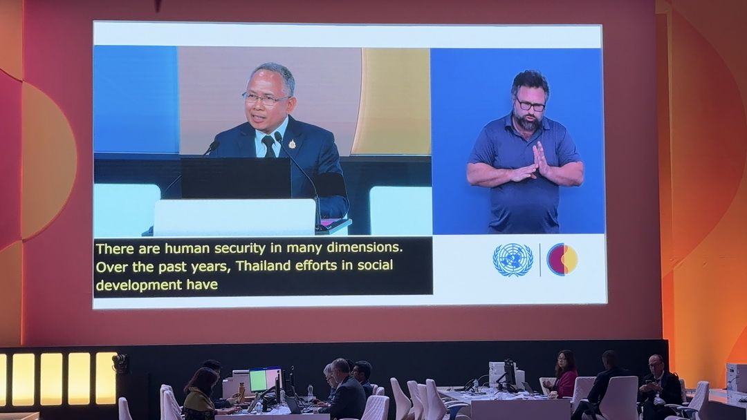นายอัครา พรหมเผ่า รัฐมนตรีว่าการกระทรวงการพัฒนาสังคมและความมั่นคงของมนุษย์ (รมว.พม.) มอบหมายให้ นายกันตพงศ์ รังษีสว่าง ปลัดกระทรวงการพัฒนาสังคมและความมั่นคงของมนุษย์ (ปลัด พม.) ในฐานะหัวหน้าคณะผู้แทนไทย กล่าวถ้อยแถลงในการประชุมสุดยอดระดับโลกว่าด้วยการพัฒนาสังคม ครั้งที่ 2 (Second World Summit for Social Development) โดยมี นางจตุพร โรจนพานิช อธิบดีกรมกิจการสตรีและสถาบันครอบครัว พร้อมด้วย คณะเจ้าหน้าที่กระทรวงการพัฒนาสังคมและความมั่นคงของมนุษย์ (พม.) กระทรวงการต่างประเทศ และกระทรวงมหาดไทย เข้าร่วมการประชุมฯ