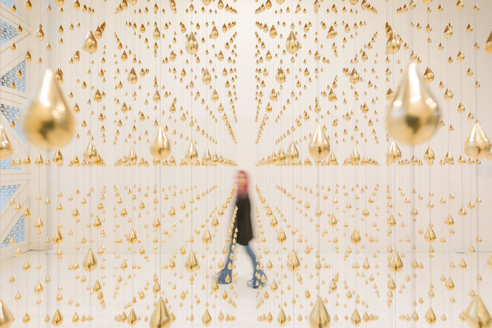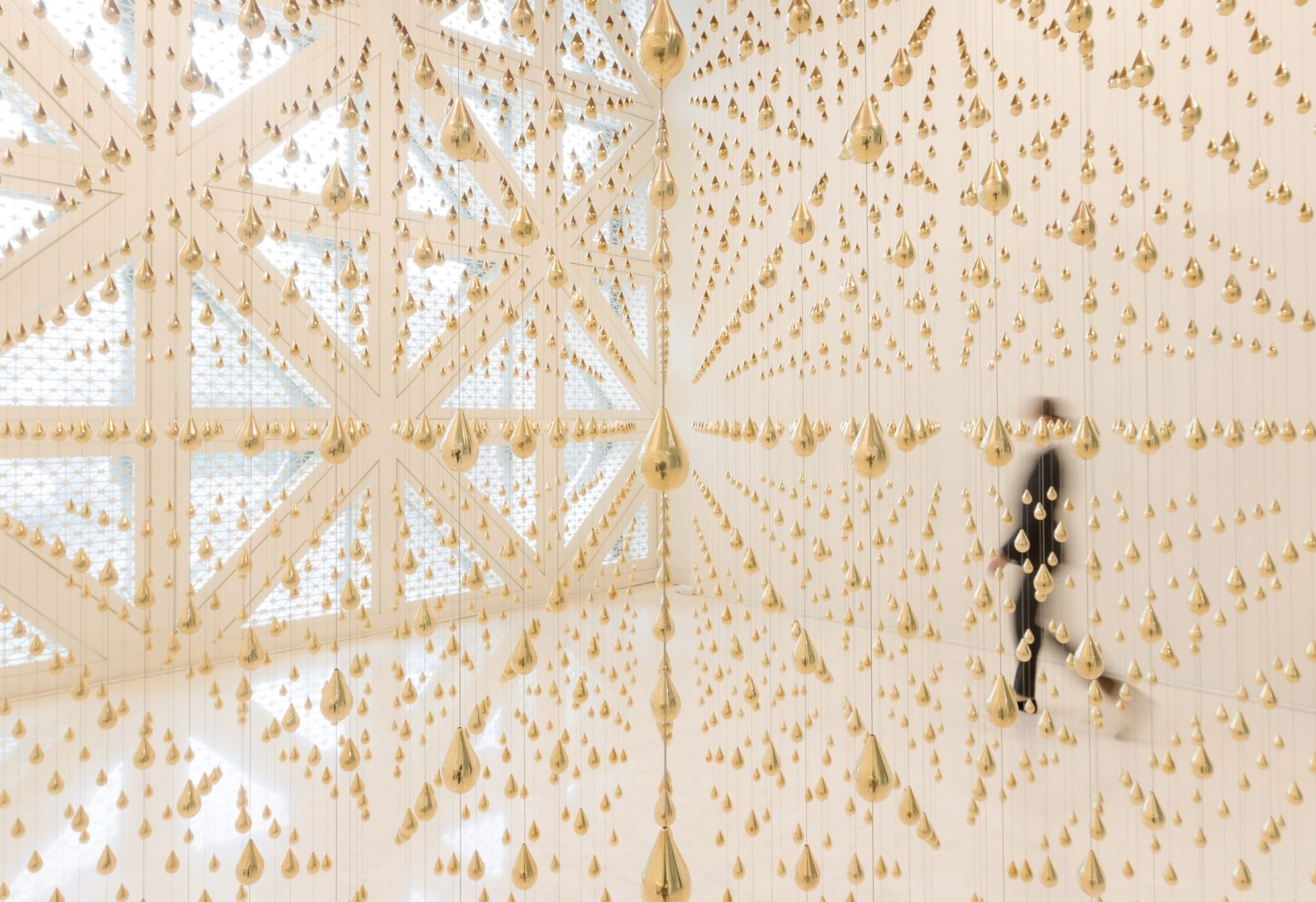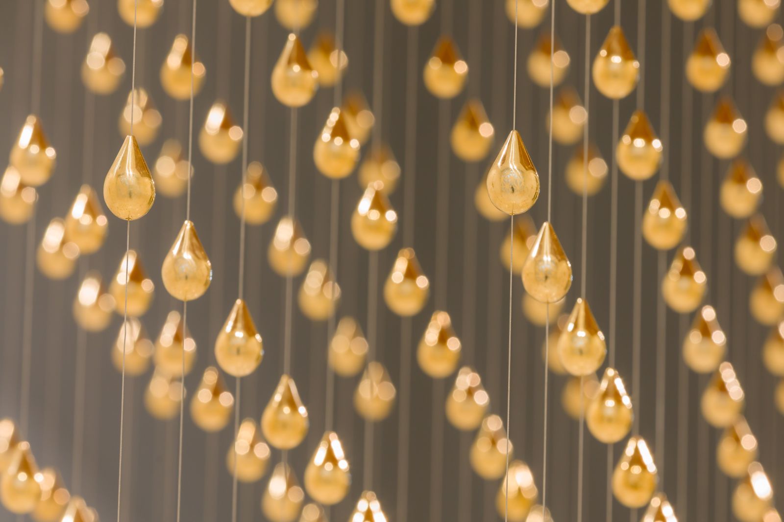 ภายในพื้นที่จัดแสดงหลัก ศิลปินได้จัดวาง “Golden Teardrop” หรือ “หยดทอง” จำนวน 2,774 ชิ้น แขวนลอยอยู่กลางอากาศราวกับหยาดฝนสีทองที่หยุดนิ่งในกาลเวลา ความประณีตและความสมมาตรของการจัดวางสร้างประสบการณ์แห่งความสงบและการครุ่นคิดราวกับการหยุดเพื่อรับฟังเสียงของเวลา และการระลึกถึงสิ่งงดงามที่ผ่านพ้นไป ความสมดุลนี้มิได้มีไว้เพื่อยืนยันความสมบูรณ์ แต่เพื่อให้เห็นว่าความงามและความจริงต่างดำรงอยู่บนเส้นแบ่งที่บางเบา การมองคือการเรียนรู้ และการเปลี่ยนมุมเพียงเล็กน้อยของผู้ชมสามารถเปลี่ยนความหมายทั้งหมดของผลงานได้ เช่นเดียวกับที่กาลเวลาและความทรงจำเปลี่ยนความหมายของทุกสิ่งอยู่เสมอ
