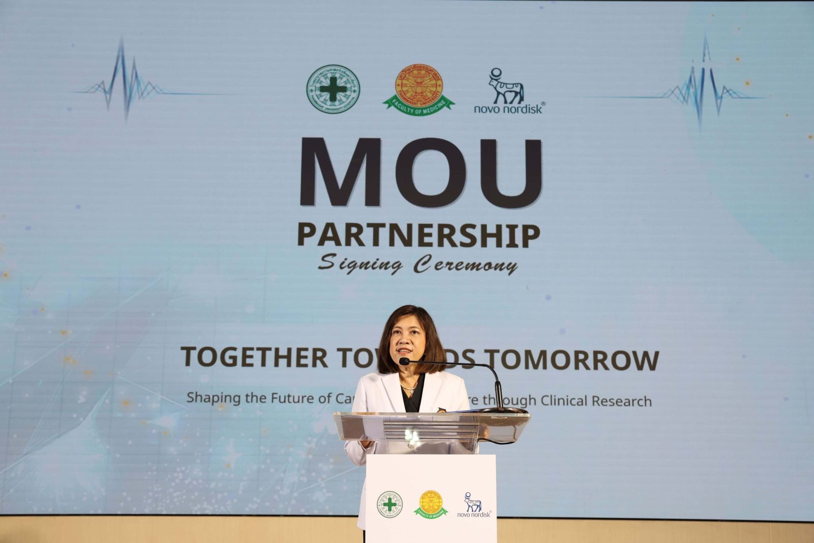พิธีลงนาม MOU ฉบับใหม่ภายใต้ชื่อ “Together Towards Tomorrow: Shaping the Future of Cardio-Metabolic Care Through Clinical Research” หรือ “ก้าวไปด้วยกันสู่วันพรุ่งนี้: กำหนดอนาคตการดูแลโรคหัวใจ หลอดเลือด และโรคทางเมแทบอลิกผ่านงานวิจัยทางคลินิก” ในครั้งนี้ จัดขึ้นที่โรงพยาบาลธรรมศาสตร์เฉลิมพระเกียรติ ซึ่งเป็นสถาบันชั้นนำที่ตั้งอยู่ในเขตปริมณฑลของกรุงเทพมหานคร นับเป็นการขยายความร่วมมือครั้งสำคัญระหว่างสององค์กร การลงนามความร่วมมือเกิดขึ้นในช่วงเวลาที่ประเทศไทยกำลังเผชิญกับจำนวนผู้ป่วยโรคหัวใจ หลอดเลือด และโรคทางเมแทบอลิก ที่เพิ่มสูงขึ้นอย่างต่อเนื่อง ยกตัวอย่างเช่น มีประชากรมากกว่าร้อยละ 45 ที่มีภาวะน้ำหนักเกินหรือโรคอ้วน และอย่างน้อย 6.1 ล้านคนที่เป็นโรคเบาหวาน ปัญหาดังกล่าวไม่เพียงสร้างภาระด้านสุขภาพ แต่ยังส่งผลต่อเศรษฐกิจและคุณภาพชีวิตของประชาชนทั่วประเทศ