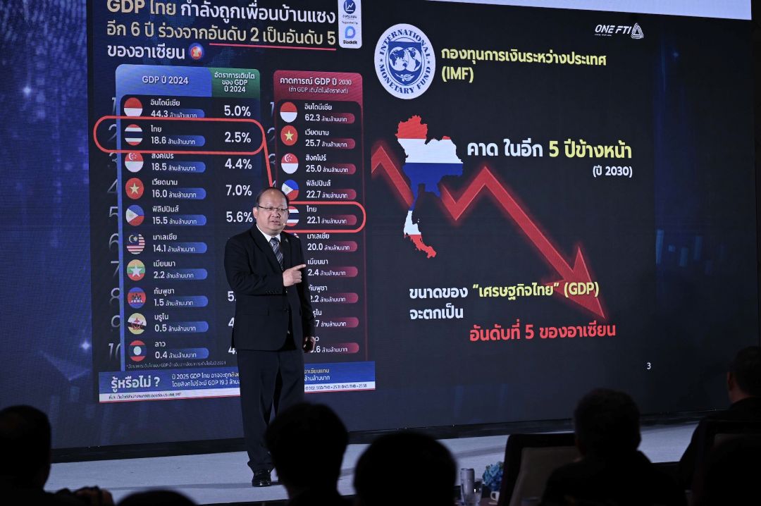 ดร.เอกนิติ กล่าวต่อไปว่า เสาหลักที่ 2 ลดภาระหนี้สินภาคประชาชน จัดตั้งบริษัทบริหารสินทรัพย์เพื่อรับซื้อหนี้ของประชาชนมาปรับปรุงโครงสร้าง ลดภาระดอกเบี้ย เสาหลักที่ 3 เพิ่มสภาพคล่องให้ SMEs ใช้กลไกของบรรษัทประกันสินเชื่ออุตสาหกรรมขนาดย่อม (บสย.) เข้ามาค้ำประกันสินเชื่อ เสาหลักที่ 4 เพิ่มการออมของประชาชน ผ่านวิธีนำเงินส่วนหนึ่งจากการซื้อสลากในแต่ละงวด ไปจัดสรรเป็นเงินออมให้กับประชาชน นอกจากนี้จะเพิ่มโอกาสให้รายย่อยสามารถเข้าถึงการซื้อพันธบัตรออมทรัพย์ และผู้สูงอายุที่ออมเงินจะได้รับอัตราดอกเบี้ยที่สูงขึ้น สุดท้าย เสาหลักที่ 5 การลงทุนเพื่ออนาคตและเพิ่มทักษะแรงงาน โดยร่วมมือกับคณะกรรมการส่งเสริมการลงทุน (BOI) เพื่อเชื่อมโยงภาคธุรกิจที่ได้รับการส่งเสริมการลงทุนกับสถาบันการศึกษา ในการผลิตแรงงานที่มีทักษะตรงตามความต้องการของตลาด พร้อมปลดล็อกโครงการที่ได้รับอนุมัติ BOI ไปแล้วในช่วงปี 2566-2567 แต่ต้องยอมรับว่ายังมีเม็ดเงินเรื่องสาธารณูปโภคและแรงงาน ที่ขอรับการลงทุนค้างอยู่ถึง 4.7 แสนล้านบาท ผ่านนโยบาย Fast Pass เพื่อเร่งรัดปลดล็อคให้เงินลงทุนกลับเข้าสู่ระบบได้เร็วขึ้น