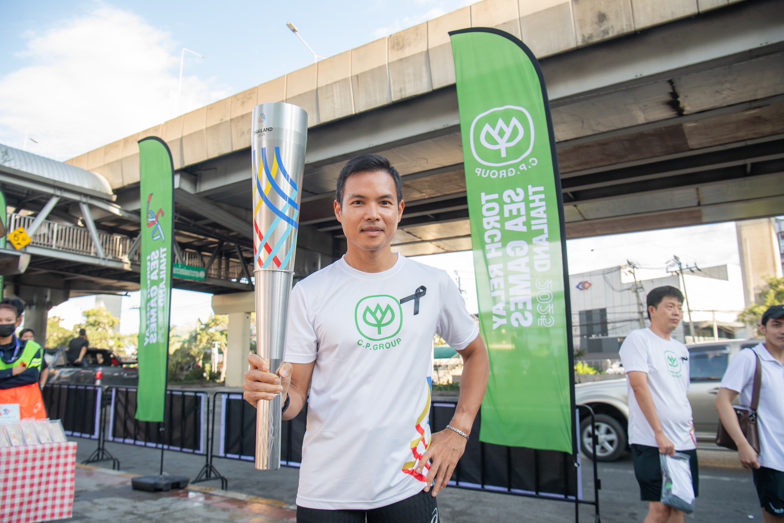 เครือเจริญโภคภัณฑ์ (ซีพี) และบริษัทในเครือ ร่วมแสดงพลังครั้งสำคัญในพิธี “อัญเชิญไฟพระฤกษ์” มหกรรมกีฬาซีเกมส์ ครั้งที่ 33 และอาเซียนพาราเกมส์ ครั้งที่ 13 โดยส่งตัวแทนจากเครือฯและบริษัทในเครือ ร่วมวิ่งอัญเชิญไฟพระฤกษ์รวม 8 จุด โดยในส่วนของบริษัท เครือเจริญโภคภัณฑ์ นำวิ่งไฟพระฤกษ์โดย “บัวขาว บัญชาเมฆ” นักชกขวัญใจคนไทย พร้อมด้วย ดร.ธีระพล ถนอมศักดิ์ยุทธ ประธานคณะผู้บริหารด้านความยั่งยืนองค์กรและการพัฒนากลยุทธ์ ซึ่งได้ร่วมวิ่งในจุดที่ 4 เป็นระยะทาง 850 เมตร เริ่มจากป้ายรถเมล์หน้าบริษัท โคเวย์ พระราม 9 ถึงหน้าป้ายรถเมล์หน้าด่านเก็บเงินทางด่วน จากนั้นไฟพระฤกษ์ได้ถูกส่งเข้าสู่ช่วงไม้ผลัดของผู้นำจากบริษัทต่าง ๆ ในเครือซีพี ซึ่งเข้าร่วมอัญเชิญไฟพระฤกษ์อย่างพร้อมเพรียง ได้แก่ ไม้ที่ 5 นายประสิทธิ์ บุญดวงประเสริฐ ประธานคณะผู้บริหาร บมจ.เจริญโภคภัณฑ์อาหาร (CPF) ไม้ที่ 6 นายซิกเว่ เบรกเก้ ประธานเจ้าหน้าที่บริหารกลุ่ม บมจ.ทรู คอร์ปอเรชั่น (True) นอกจากนี้กลุ่มธุรกิจต่าง ๆ ในเครือซีพียังได้ร่วมวิ่งอัญเชิญไฟพระฤกษ์ตลอดเส้นทาง สร้างภาพพลังองค์กรที่เข้มแข็งและหลากหลาย ได้แก่ นายวิชัย จันทร์จริยากุล กรรมการผู้จัดการ บมจ.ซีพี ออลล์ (CP ALL – 7-Eleven) นายถิรายุ ทรงเวชเกษม ประธานเจ้าหน้าที่บริหารสายงานดิจิทัล บมจ.ซีพี แอ็กซ์ตร้า นายมนต์ชัย อินทรพรอุดม ผู้อำนวยการอาวุโสฝ่ายปฏิบัติการธุรกิจไฮเปอร์มาร์เก็ต บมจ.ซีพี แอ็กซ์ตร้า (CP AXTRA – Makro – Lotus’s) นางสาวมนสินี นาคปนันท์ กรรมการผู้จัดการใหญ่ (ร่วม) บจก.แอสเซนด์ มันนี่ และดร. สรินทิพย์ สถิตย์เสถียร กรรมการผู้จัดการ Amaze Super App