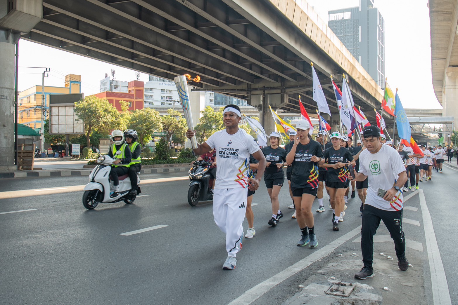 ทั้งนี้ นอกจากผู้บริหารและพนักงานของเครือซีพีที่พร้อมใจกันออกมาวิ่งติดตามการอัญเชิญไฟพระฤกษ์แล้ว ยังมีนักวิ่งสมัครเล่นที่เข้าร่วมสมทบ ซึ่ง นายฐมศิลป์ ตันศรีตรัง ได้เผยความรู้สึกด้วยรอยยิ้มว่า “เป็นเกียรติอย่างยิ่งที่ได้ร่วมวิ่งในขบวนอัญเชิญไฟพระฤกษ์ในงานมหกรรมซีเกมส์ 2025 ครั้งนี้ ถือเป็นโอกาสสำคัญ เพราะไทยของเราเป็นเจ้าภาพจัดการแข่งขัน ผมเคยร่วมวิ่งซีเกมส์ที่สงขลามาแล้ว แต่ครั้งนี้ยิ่งพิเศษกว่าเดิม เพราะได้มาวิ่งที่กรุงเทพฯ และได้รับการคัดเลือกจากเครือซีพีให้เข้าร่วม จึงรู้สึกดีใจมาก โดยเฉพาะในฐานะที่เป็นลูกค้าของซีพีอยู่แล้ว เลยลองสมัครผ่านแฟนเพจ We Are CP และโชคดีที่ได้เข้าร่วมงานครั้งนี้ เหนือสิ่งอื่นใดผมอยากส่งต่อกำลังใจให้นักกีฬาไทยทุกคน ขอให้คว้าชัยและเป็นเจ้าเหรียญทองในซีเกมส์ปีนี้ให้ได้ เราทุกคนเป็นกำลังใจให้เสมอ”