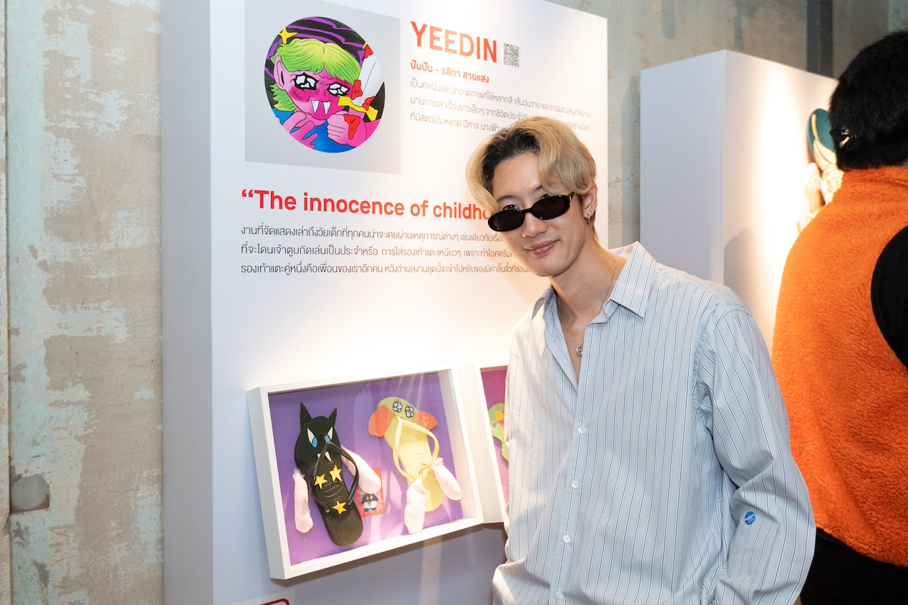 KnnFive | นัท คณัสนันท์: ศิลปินที่สร้างมุมมองที่แตกต่างผ่านตัวละครที่กำลังแอบมองรองเท้าของกันและกัน โดยตั้งใจเว้นช่วงล่างไม่ให้เห็นเท้าของผู้สวมใส่ เพื่อกระตุ้นให้ผู้ชมได้ใช้จินตนาการคาดเดาถึงผู้คนที่กำลังใส่รองเท้าเหล่านั้น งานของเขาจึงสร้างความสนุกสนานและเชิญชวนให้ผู้ชมมีส่วนร่วมในเรื่องราว, HUUYAOW | ปิ๊ง มัณฑนา: ศิลปินผู้มองเรื่องราวผ่านการออกเดินทาง นำเสนอแนวคิด Footprint ที่สะท้อนว่ารอยเท้าและรองเท้าของเราสามารถไปกับเราได้ทุกที่ ไม่ว่าจะบนผืนดิน ท้องน้ำ กลางวัน หรือกลางคืน ชวนให้ผู้ชมเรียนรู้ว่าชีวิตมีหลายมิติและเราล้วนมี Footprint ของเราในประวัติศาสตร์ของชีวิต