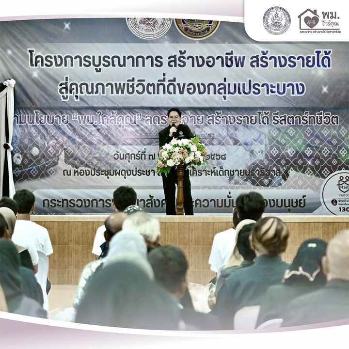 นายอัครา พรหมเผ่า รัฐมนตรีว่าการกระทรวงการพัฒนาสังคมและความมั่นคงของมนุษย์ (รมว.พม.) นำคณะผู้บริหารกระทรวง พม. และหน่วยงานทีม พม.ใกล้คุณ ลงพื้นที่จังหวัดนราธิวาส ณ สถานสงเคราะห์เด็กชายนราธิวาส อำเภอเมือง จังหวัดนราธิวาส เพื่อเปิดโครงการบูรณาการสร้างอาชีพ สร้างรายได้ สู่คุณภาพชีวิตที่ดีของกลุ่มเปราะบาง และพบปะเยี่ยมให้กำลังใจกลุ่มเปราะบาง พร้อมมอบสิ่งของเครื่องใช้ที่จำเป็นเพื่อบรรเทาความเดือดร้อน และติดตามการขับเคลื่อนงานพัฒนาคุณภาพชีวิตประชาชนกลุ่มเป้าหมายตามนโยบาย "พม.ใกล้คุณ" ลดรายจ่าย สร้างรายได้ รีสตาร์ทชีวิต โดยมี นายกฤษณนันท์ กำไร รองผู้ว่าราชการจังหวัดนราธิวาส ให้การต้อนรับ