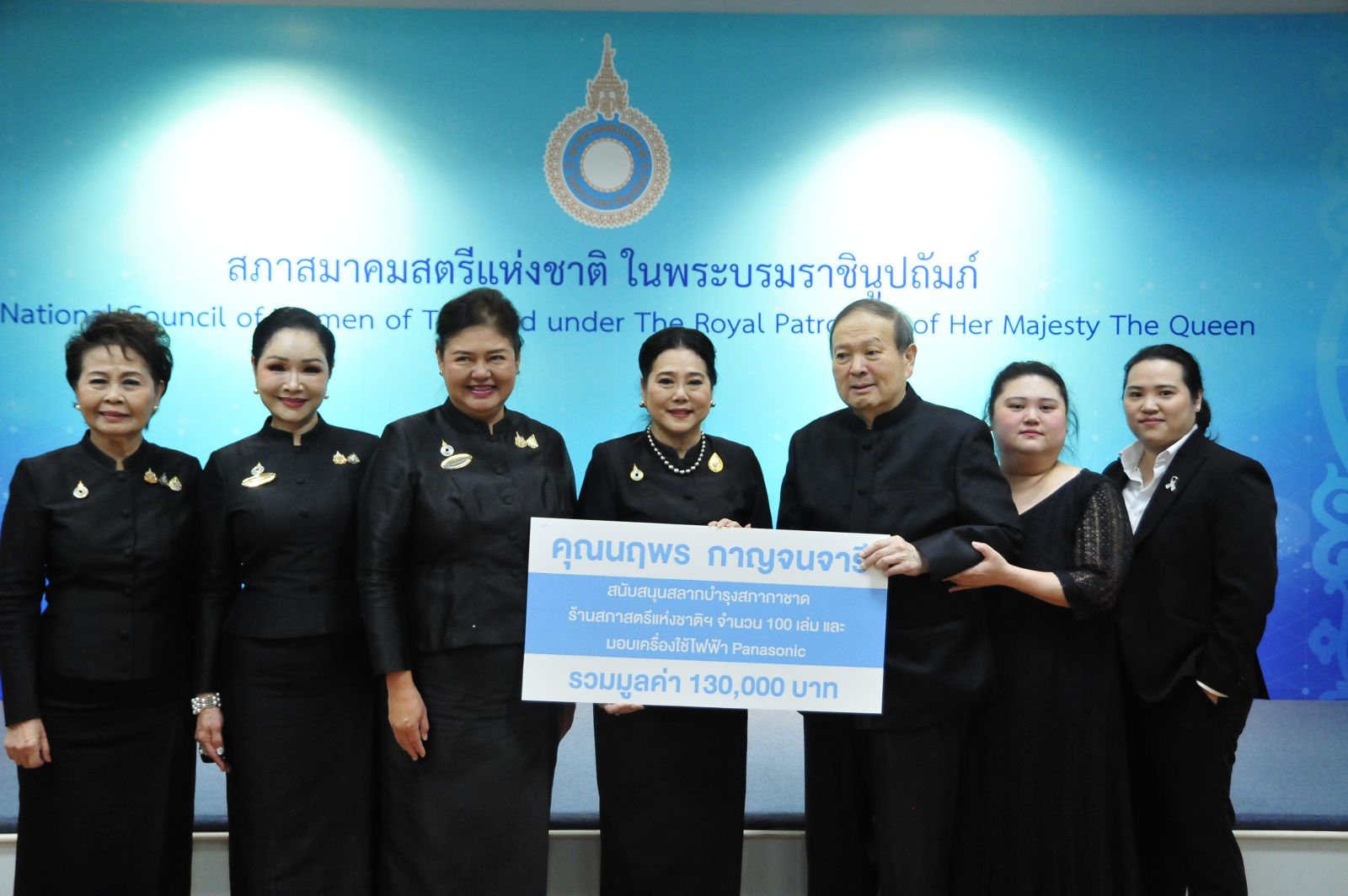เพ็ญพักตร์ ศรีทอง ประธานสภาสมาคมแม่ดีเด่นแห่งชาติฯ พร้อมคณะกรรมการ ร่วมยินดีกับ ดร.ลาลีวรรณ กาญจนจารี ประธานสภาสมาคมสตรีแห่งชาติฯ และร่วมมอบเงินสนับสนุนการออกร้านสภาสมาคมสตรีแห่งชาติฯ