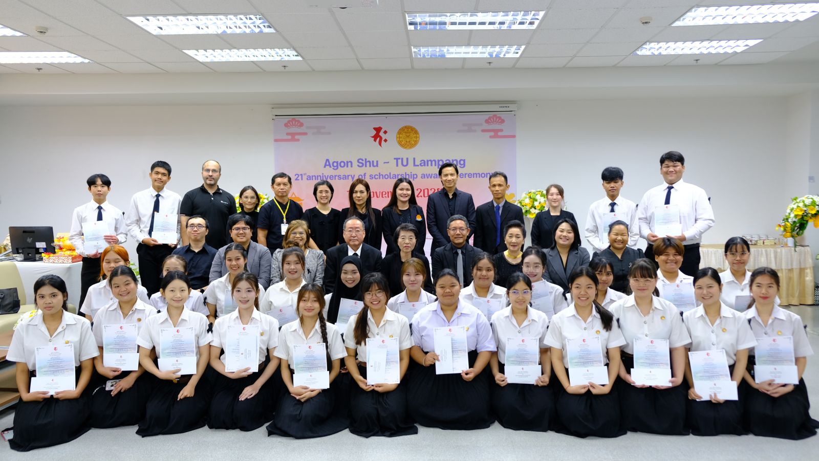 ผู้ใหญ่ใจดีจากมูลนิธิอากอนชู คณะผู้บริหาร คณาจารย์ และ นศ.มธ.ศูนย์ลำปางที่ได้รับทุน