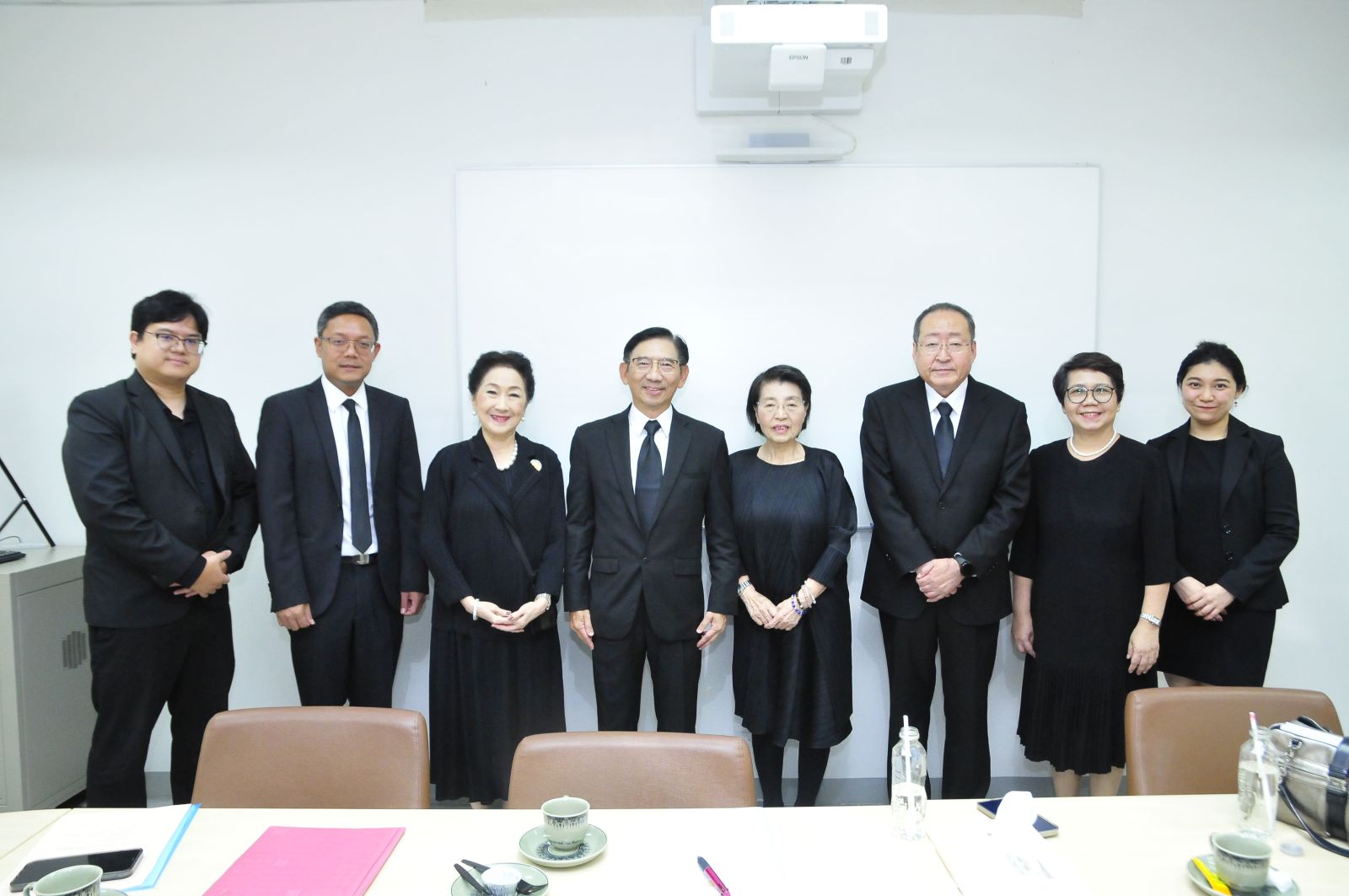 ผศ.ดร.ปกป้อง ส่องเมือง ผู้ประสานงานมูลนิธิ, รศ.ดร.กิตติวัฒน์ จันทร์แจ่มใส รองอธิการบดีฝ่ายบริหารศูนย์ลำปางและการนักศึกษา, ผาณิต พูนศิริวงศ์ อดีตนายกสมาคมวารสารศาสตร์ฯ มธ. ผู้ประสานงานมูลนิธิฯ, ศ.ดร.สมคิด เลิศไพฑูรย์ อดีตอธิบการบดี มธ., Ms. Kazuko Maki, Mr.Shimabukuro Masaru, ผศ.ดร.อัจฉรา ปัณฑรานุวงศ์ คณบดีคณะวารสารศาสตร์ฯ และ ดร.อาทิมา ขำเปลี่ยน