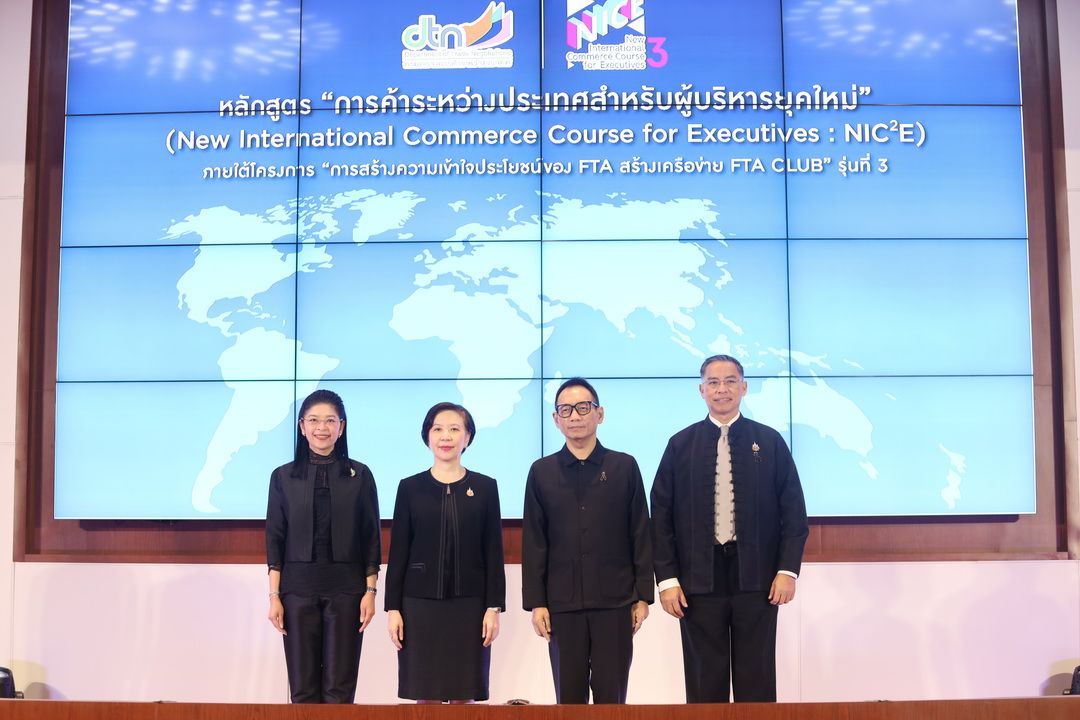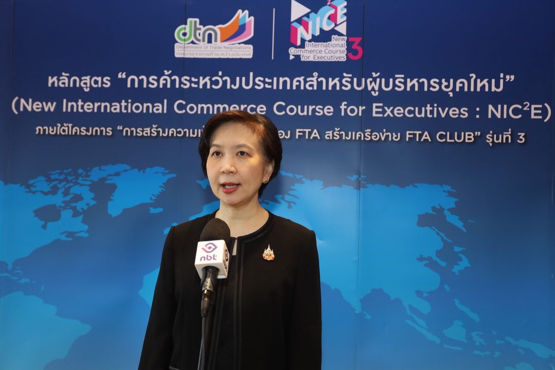 กรมเจรจาการค้าระหว่างประเทศ เดินหน้าจัดอบรมหลักสูตร “การค้าระหว่างประเทศสำหรับผู้บริหารยุคใหม่” รุ่นที่ 3 หรือ “ไนซ์” (New International Commerce Course for Executives : NIC2E) ต่อยอดความสำเร็จรุ่น 1 และรุ่นที่ 2 เตรียมความพร้อมผู้บริหารรุ่นใหม่ทุกภาคส่วน จัดกิจกรรมอบรม Bootcamp ระดมสมองจัดทำ workshop วางกลยุทธ์การเจรจาการค้าระหว่างประเทศ สร้างเครือข่าย FTA Club และผลักดันการส่งออกในตลาดการค้าเสรี