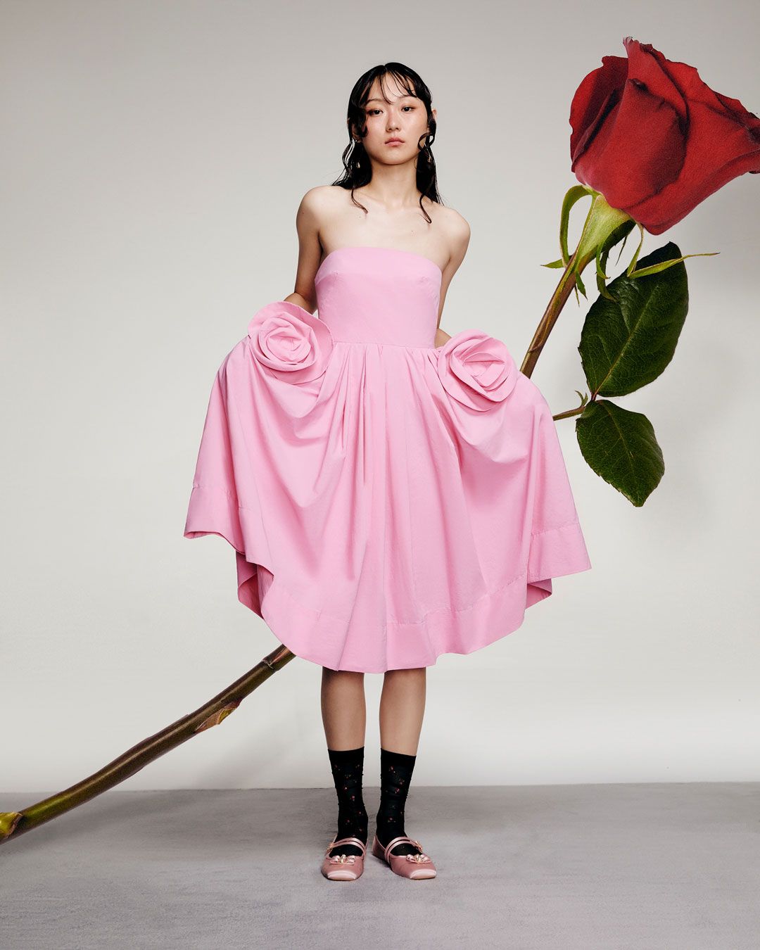 ไฮไลต์ประจำคอลเลกชั่นนี้ อาทิ เดรสสั้นสีนู้ดปักดอกไม้ เติมความพิเศษด้วยดีไซน์เบสิคในสีสันคลาสสิค แต่เหนือชั้นด้วยดอกไม้สีชมพูลูกกวาดขนาดเล็กมากมายที่ปักอย่างประณีต เดรสเกาะอกพิมพ์ลายดอกไม้ออมเบร ไอเทมคลาสสิกในเฉดสีดำสนิทที่ถูกแต่งแต้มด้วยลวด ลายดอกไม้หลอมละลายในโทนสีสันสดใส ให้ความเอฟฟอร์ทเลสเหมาะกับทั้งช่วงเช้าและค่ำคืน เดรสสั้นแต่งดอกกุหลาบ เดรสโทนสีดำเข้มสุขุม พิเศษด้วยเทคนิคแต่งดอกกุหลาบขมวดปมขนาดใหญ่บริเวณเหนือชายกระโปรง แมทช์กับรองเท้าส้นสูงเปลือยเท้าสีป็อปคัลเลอร์สำหรับไนท์เอาท์สุดเซ็กซี่ เดรสเกาะอกแต่งดอกกุหลาบ สวยสง่าในสไตล์เฟมินีนแต่ยังคงโดดเด่นด้วยเทคนิคตกแต่งดอกกุหลาบขนาดใหญ่บริเวณสะโพก และสุดท้าย จัมพ์สูทคล้องคอ เรียบง่ายแต่อิมแพคในไอเทมพาแลตสีนู้ด คัทติ้งสุดเนี๊ยบที่แนบเนียนเข้ากับทุกสรีระ ตอบโจทย์สาวผู้มองหาความน้อยแต่มาก ให้ความเรียบและโก้ในเวลาเดียวกัน
