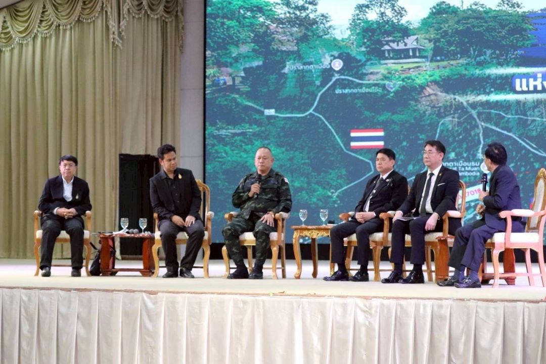 โดยภายในงานได้รับเกียรติจาก ศุภมาส อิศรภักดี รัฐมนตรีประจำสำนักนายกรัฐมนตรีเป็นประธาน พร้อมผู้เข้าร่วมเสวนาในครั้งนี้ได้แก่ดร.สฤทธิ์พงษ์ เกี่ยวข้องประธานคณะกรรมาธิการวิสามัญ พิจารณา MOU 2543 และ 2544 ไทย-กัมพูชา สภาผู้แทนราษฎร นายอังกูร กุลวานิช รองอธิบดีกรมสนธิสัญญาและกฎหมาย กระทรวงการต่างประเทศ พล.ต.กัมปนาท วาพันสุ เสนาธิการกองทัพภาคที่ 2 ดร.ธนเชษฐ วิสัยจร หัวหน้าสาขาวิชาการปกครอง คณะรัฐศาสตร์ มหาวิทยาลัยอุบลราชธานีผศ.ดร.สุเชาวน์ มีหนองหว้า รองประธานคณะกรรมการศูนย์พัฒนาการเมืองภาคพลเมืองสถาบันพระปกเกล้าจังหวัดอุบลราชธานี
