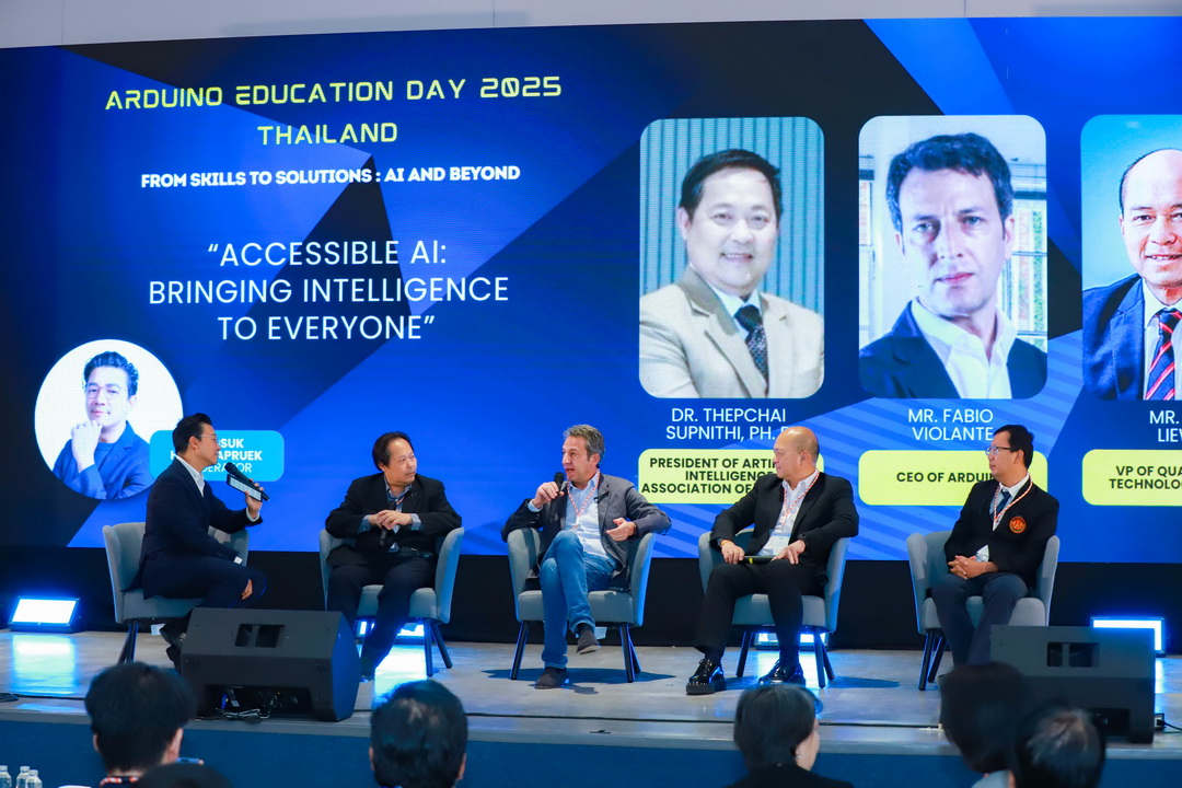 ทั้งนี้ ภายในงานมีนักเรียน ครู อาจารย์ มหาวิทยาลัย หน่วยงานรัฐ และผู้ประกอบการดิจิทัลกว่า 3,000 คนเข้าร่วม โดยมีกิจกรรมพิเศษ อาทิ การเสวนากับผู้นำระดับโลก หัวข้อ “Accessible AI: Bringing Intelligence to Everyone” โดยผู้บริหารบริษัทฯ เทคระดับโลก และนักคิด นักสื่อสารด้านเทคโนโลยีชั้นนำของไทยร่วมแลกเปลี่ยนมุมมอง ได้แก่ Mr. Fabio Violante Chief Executive Officer Arduino, Mr.ST Liew Vice President Qualcomm, ดร.เทพชัย ทรัพย์นิธิ นายกสมาคมปัญญาประดิษฐ์ประเทศไทย, รศ.ดร.สมยศ เกียรติวนิชวิไล คณบดีคณะวิศวกรรมศาสตร์ สถาบันเทคโนโลยีพระจอมเกล้าเจ้าคุณทหารลาดกระบัง และคุณหนุ่ย พงศ์สุข หิรัญพฤกษ์ ผู้ก่อตั้ง บริษัท โชว์ไร้ขีด จำกัด เจ้าของเว็บไซต์ beartai.com และกรรมการผู้ทรงคุณวุฒิ อพวช. เป็นผู้ดำเนินรายการเสวนาฯ ดังกล่าว เพื่อเปิดโอกาสให้เยาวชนและครูไทยเข้าถึงเทคโนโลยี AI อย่างเท่าเทียม นอกจากนี้ ยังมีบูธกิจกรรมจาก 12 มหาวิทยาลัยชื่อดังที่มาแนะแนวทางการศึกษาต่อ การแข่งขันสร้างนวัตกรรมและ Skills Test และกิจกรรม Mini Workshop กว่า 10 รอบต่อวัน อีกด้วย
