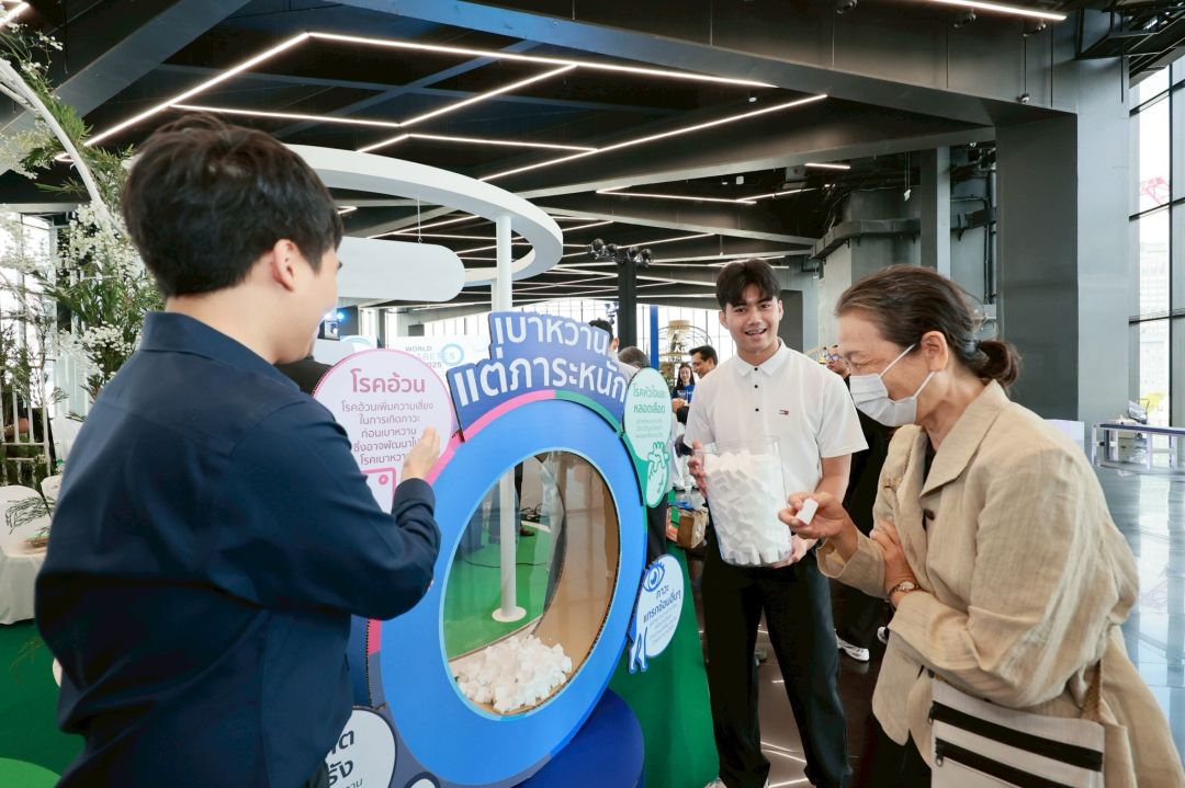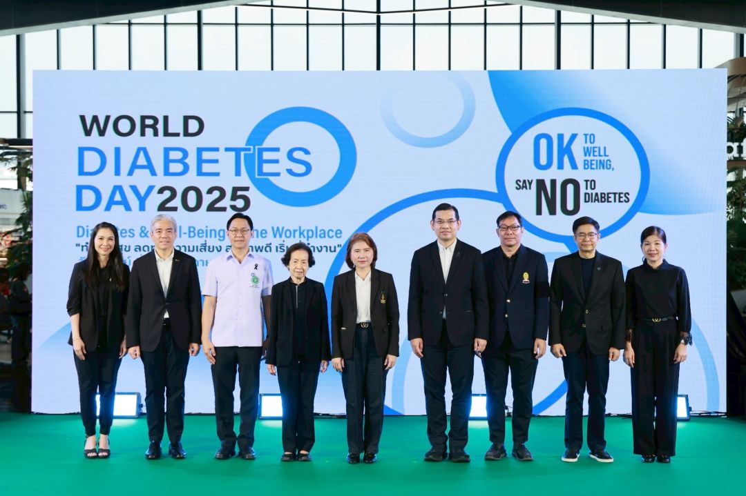 สมาคมโรคเบาหวานแห่งประเทศไทย ในพระราชูปถัมภ์ฯ ร่วมกับ จุฬาลงกรณ์มหาวิทยาลัย กระทรวงสาธารณสุข สำนักงานกองทุนสนับสนุนการสร้างเสริมสุขภาพ (สสส.) และภาคีเครือข่าย ด้านสุขภาพ จัดกิจกรรม “วันเบาหวานโลก ประจำปี 2568 (World Diabetes Day 2025)” ภายใต้แนวคิด “Diabetes and Well-being: Creating Healthy Workplaces for All” หรือ “สุขภาพดี เริ่มที่ทำงาน” ณ อาคาร Siam Scape ชั้น 1 และ ชั้น 9 เพื่อสร้างความตระหนักรู้ถึง ความสัมพันธ์ระหว่าง “สุขภาพ” และ “ชีวิตการทำงาน” พร้อมรณรงค์ให้สถานที่ทำงานทั่วประเทศกลายเป็น “พื้นที่สุขภาวะ” ที่ส่งเสริมคุณภาพชีวิต ของคนไทยทุกคน