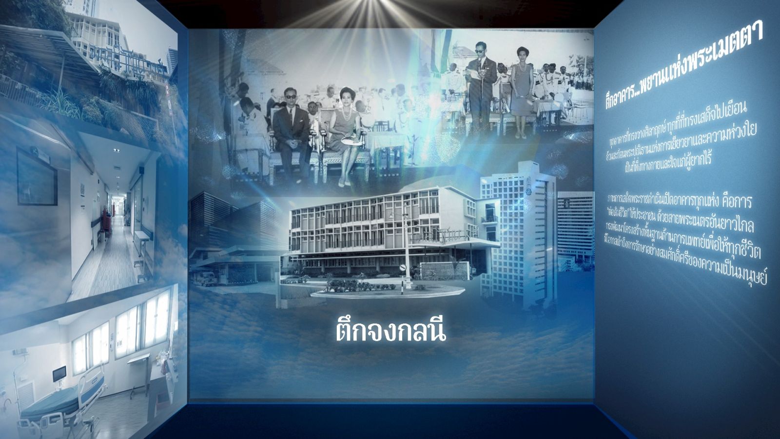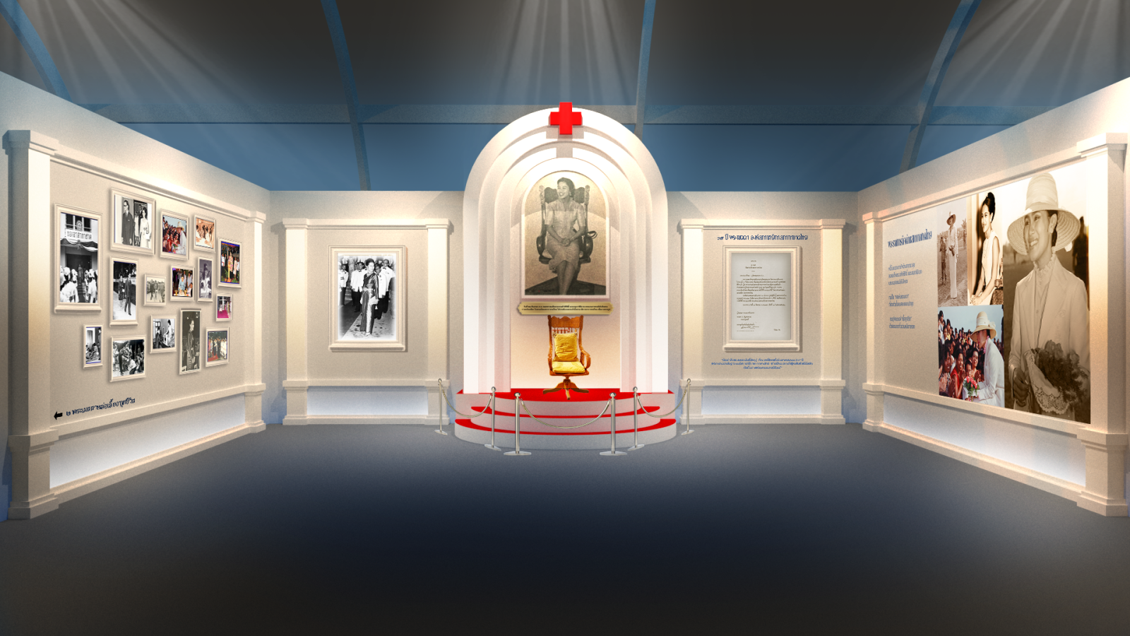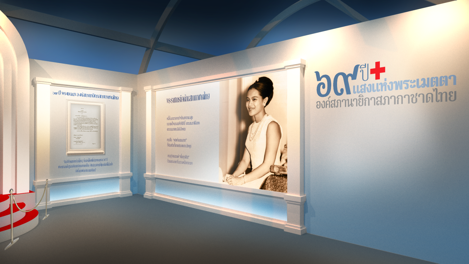 โซนจัดแสดงนิทรรศการ “69 ปี แสงแห่งพระเมตตา องค์สภานายิกาสภากาชาดไทย” จัดแสดงพระราชกรณียกิจ สมเด็จพระนางเจ้าสิริกิติ์ พระบรมราชินีนาถ พระบรมราชชนนีพันปีหลวง เมื่อยังทรงดำรงตำแหน่งสภานายิกาสภากาชาดไทย นับตั้งแต่ปี 2499 จนถึงปี 2568 รวมเวลา 69 ปี โดยถ่ายทอดผ่านนิทรรศการ 4 โซน เริ่มต้นด้วย โซน“แสงแห่งพระเมตตา” มีการจัดแสดงพระเก้าอี้ โต๊ะทรงงานฯ และการจัดแสดงภาพพระราชกรณียกิจเพื่อให้ประชาชน น้อมรำลึกในพระเมตตาที่ทรงขับเคลื่อนภารกิจด้านมนุษยธรรมของสภากาชาดไทยตลอด 69 ปี โซน “พระราชกรณียกิจเพื่อทุกชีวิต” ที่จัดแสดงพระราชกรณียกิจ เพื่อการบรรเทาทุกข์ บำรุงสุขแก่ประชาชน อาทิ เหตุการณ์บ้านเขาล้าน พระเมตตาที่มีต่อการแพทย์ การบรรเทาทุกข์ผู้ประสบภัย ด้านการบริการโลหิต ด้านส่งเสริมคุณภาพชีวิต ผ่านแสงสีเสียงในการถ่ายทอดเรื่องราว โซน “พระเมตตาแห่งการแบ่งปัน” นำเสนอพระราชกรณียกิจด้านการหารายได้ ทรงดำริริเริ่มงานหารายได้ใหม่ ๆ โดยเฉพาะในงานกาชาด และโซน “แรงบันดาลใจจากพระเมตตา” จัดแสดงเป็นสวนดอกไม้ พร้อมข้อความพระราชดำรัสที่ทรงพระราชทานในโอกาสต่าง ๆ ผ่านการนำเสนอด้วยเทคนิคทางดิจิทัล ภายในนิทรรศการฯ ยังมีกิจกรรมเชิญชวนประชาชนร่วมบริจาคเงินเพื่อโดยเสด็จพระราชกุศลบำรุงสภากาชาดไทย ผู้บริจาคจะได้รับพระบรมฉายาลักษณ์ สมเด็จพระนางเจ้าสิริกิติ์ พระบรมราชินีนาถ พระบรมราชชนนีพันปีหลวง ในรูปแบบโปสการ์ดอันทรงคุณค่ายิ่ง จำนวน 12 ภาพ จำนวน 60,000 ใบ เป็นที่ระลึก