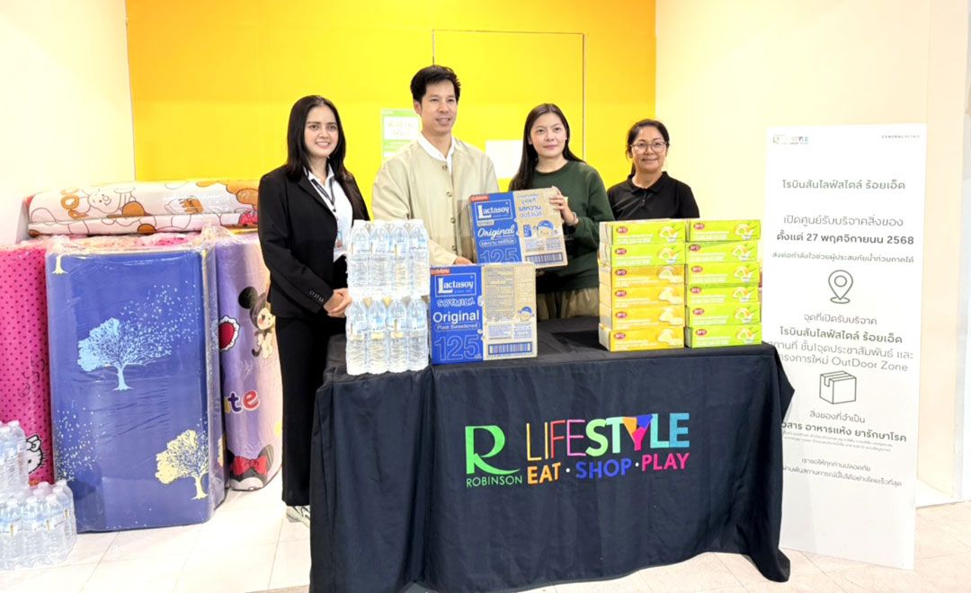 ศูนย์การค้าโรบินสันไลฟ์สไตล์ ในเครือเซ็นทรัล รีเทล เร่งเดินหน้าภารกิจช่วยเหลือผู้ประสบอุทกภัยในภาคใต้ โดยร่วมมือกับหน่วยงานภาครัฐและกลุ่มผู้มีจิตอาสา เพื่ออำนวยความสะดวก และสนับสนุนการส่งต่อความช่วยเหลืออย่างทันท่วงที โดยเปิดจุดรับบริจาคสิ่งของที่จำเป็นที่โรบินสันไลฟ์สไตล์ 20 สาขาทั่วประเทศ ตอกย้ำแนวคิด “Central to Life” ศูนย์กลางชีวิตของทุกคน ที่พร้อมอยู่เคียงข้างประชาชน ให้ผ่านพ้นวิกฤตในทุกสถานการณ์ไปด้วยกัน โดยจุดรับบริจาคสิ่งของจำเป็นที่โรบินสันไลฟ์สไตล์ 20 สาขาทั่วประเทศ ได้แก่ ศรีสมาน, สุวรรณภูมิ (ลาด กระบัง), สมุทรปราการ, ฉลอง, ถลาง, ฉะเชิงเทรา, สระบุรี, ราชบุรี, สุพรรณบุรี, กาญจนบุรี, ตรัง, ชลบุรี, บ่อวิน, ร้อยเอ็ด, บ้านฉาง, เพชรบุรี, ลพ บุรี, สกลนคร, ปราจีนบุรี และ มุกดาหาร ซึ่งประชาชนสามารถร่วมบริจาคสิ่งของจำเป็น อาทิ ข้าวสาร อาหารแห้ง น้ำดื่ม และยารักษาโรค เพื่อนำไปส่งมอบต่อยังพื้นที่ประสบอุทกภัยภาคใต้ ผ่านการประสานงานร่วมกับหน่วยงานที่เกี่ยวข้อง เพื่อให้ความช่วยเหลือสามารถเข้าถึงผู้ที่ได้รับผลกระทบได้อย่างรวดเร็ว