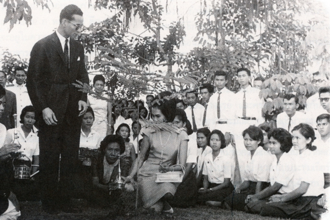 วันที่ 29 พฤศจิกายน พุทธศักราช 2506 เวลา 15.30 นาฬิกา พระบาทสมเด็จพระบรมชนกาธิเบศ มหาภูมิพลอดุลยเดชมหาราช บรมนาถบพิตร เสด็จพระราชดำเนินพร้อมด้วย สมเด็จพระนางเจ้าสิริกิติ์ พระบรมราชินีนาถ พระบรมราชชนนีพันปีหลวง ทรงปลูกต้นนนทรี 9 ต้น อันเป็นต้นไม้สัญลักษณ์ประจำมหาวิทยาลัยเกษตรศาสตร์ ณ บริเวณสระน้ำ ด้านหน้าหอประชุม มหาวิทยาลัย เกษตรศาสตร์ ตามคำกราบบังคมทูลเชิญของสมาคมนิสิตเก่ามหาวิทยาลัยเกษตรศาสตร์ ในพระบรมราชูปถัมภ์ ในการนี้ นายธวัชชัย ไชยชนะ นายกสมาคม นิสิตเก่าฯ และ หลวงอิงคศรีกสิการ (อินทรี จันทรสถิตย์) อธิการบดี เป็นผู้กราบบังคมทูลถวายรายงาน