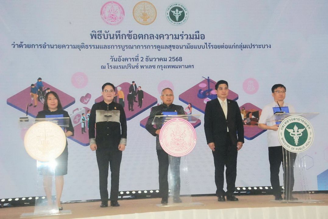 2 ธันวาคม 2568 นายอัครา พรหมเผ่า รัฐมนตรีว่าการกระทรวงการพัฒนาสังคมและความมั่นคงของมนุษย์ (รมว.พม.) เป็นประธานในพิธีลงนามบันทึกข้อตกลงความร่วมมือ (MOU) ว่าด้วยการอำนวยความยุติธรรมและการบูรณาการการดูแลสุขอนามัยแบบไร้รอยต่อแก่กลุ่มเปราะบาง ระหว่างกระทรวงการพัฒนาสังคมและความมั่นคงของมนุษย์ (พม.) กระทรวงยุติธรรม (ยธ.) และกระทรวงสาธารณสุข (สธ.) พร้อมทั้งเปิดกิจกรรม Kick off การอำนวยความยุติธรรมและการบูรณาการการดูแลสุขอนามัยแบบไร้รอยต่อแก่กลุ่มเปราะบาง โดยมีนายกันตพงศ์ รังษีสว่าง ปลัดกระทรวงการพัฒนาสังคมและความมั่นคงของมนุษย์ , นางพงษ์สวาท นีละโยธิน ปลัดกระทรวงยุติธรรม และนายแพทย์โสภณ เอี่ยมศิริถาวร รองปลัดกระทรวงสาธารณสุข ร่วมลงนาม MOU อีกทั้ง นายกองตรี ดร.ธนกฤต จิตรอารีย์รัตน์ เลขานุการรัฐมนตรีว่าการกระทรวงการพัฒนาสังคมและความมั่นคงของมนุษย์ ร่วมเป็นสักขีพยาน พร้อมด้วย นายยอดศักดิ์ รักษาแก้ว ที่ปรึกษารัฐมนตรีว่าการกระทรวงสาธารณสุข นางสาวสุนีย์ ศรีสง่าตระกูลเลิศ รองปลัดกระทรวงการพัฒนาสังคมและความมั่นคงของมนุษย์ และคณะผู้บริหารกระทรวง พม. ยธ. และ สธ. เข้าร่วมงาน ณ โรงแรมปริ๊นซ์ พาเลซ กรุงเทพมหานคร