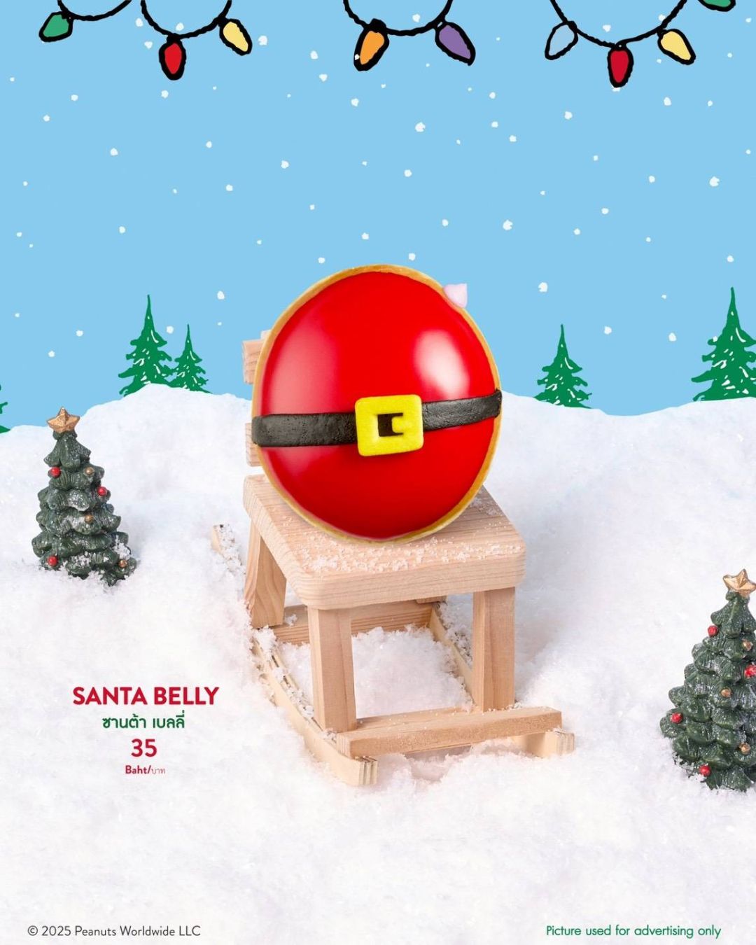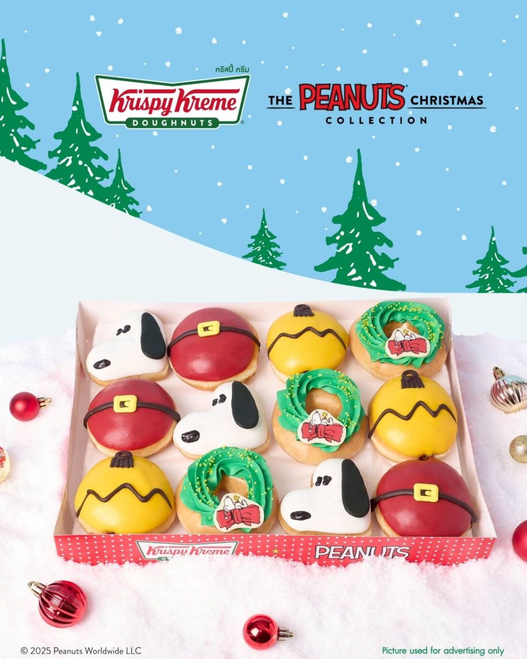 คริสปี้ ครีม (Krispy Kreme) โดนัทสูตรลิขสิทธิ์อันดับ 1 ที่ครองใจคนทั่วโลก ส่งความสุขรับคริสต์มาสและปีใหม่แบบ เอ็กคลูซีฟด้วย “Krispy Kreme x Peanuts™ Christmas” Doughnuts ให้คุณได้ร่วมฉลองไปกับสนูปปี้, ผองเพื่อน และสัญลักษณ์ประจำเทศกาลคริสมาสต์ ด้วยโดนัท 4 แบบ 4 สไตล์ เริ่มที่สนูปปี้ คุกกี้แอนด์ ครีม (Snoopy Cookies & Kreme™) โดนัทรูปทรงหัวใจ เคลือบไวท์ช็อกโกแลต ตกแต่งเป็นหน้าตาของสนูปปี้ ขวัญใจของคนทุกวัย พร้อมสอดไส้คุ้กกี้แอนด์ครีมเข้มข้น ตามมาด้วยคู่ซี้ ชาร์ลี บราวน์ ออนาเม้นท์ (Charlie Brown Ornament) โดนัทสอดไส้บราวน์บัตเตอร์ท็อฟฟี่คัสตาร์ด เคลือบช็อกโกแลตสีเหลือง โดดเด่นด้วยลวดลายหยักของเสื้อตัวเก่งจากดาร์กช็อกโกแลต, คริสต์มาส โดนัท (Christmas Wreath) โดนัทออริจินอล เกลซ ประดับด้วย Wreath จากวิปปิ้งครีมสีเขียวเนียนนุ่ม เพิ่มกิมมิคด้วยสนูปปี้กับเพื่อนที่ดีทีสุด เจ้านกสีเหลืองวูดสต็อกบนโบว์สีแดงสดใส ปิดท้ายด้วย ซานต้า เบลลี่ (Santa Belly) โดนัทเนื้อนุ่มสอดไส้สตรอว์เบอร์รีครีมรสละมุน เคลือบด้วยช็อกโกแลตสีแดงสด ตกแต่งด้วยซานต้าเบลต์ชูการ์แคนดี้ เพิ่มความน่ารักให้เข้ากับเทศกาล
