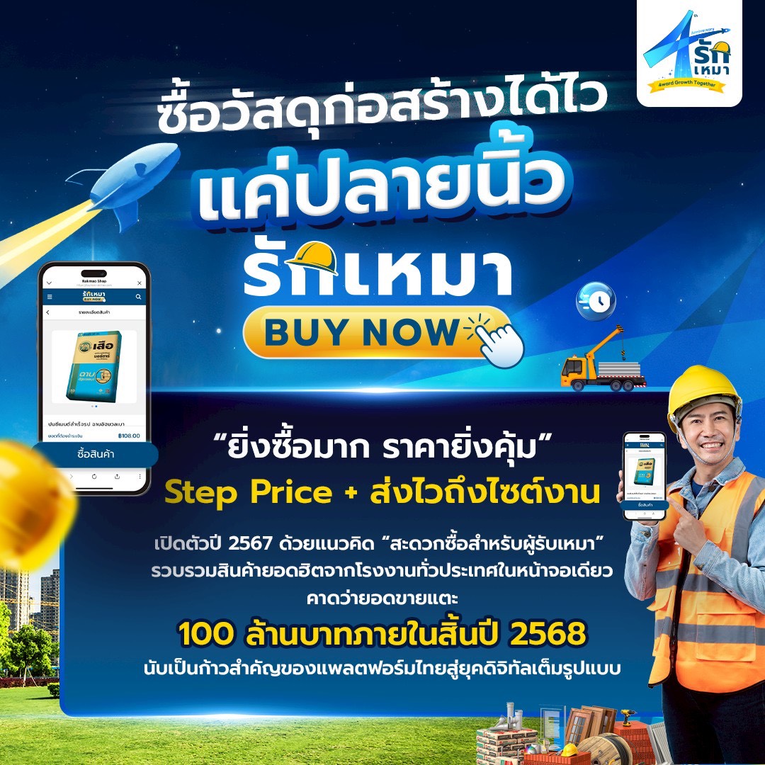 • เปิดให้บริการรักเหมา EZY ภายใต้สโลแกน จัดซื้อครบ จบทุกไซต์ ทำให้ผู้รับเหมามีผู้ช่วยจัดซื้อในมือถือเครื่องเดียว ออกแบบมาเพื่อให้การสั่งซื้อวัสดุก่อสร้าง “ง่าย เหมือนสั่งกับร้านประจำ” แต่ “ชาญฉลาด และ ครบกว่าเดิมด้วยเทคโนโลยีและ AI” โดยบริการนี้จะช่วยให้ผู้รับเหมากลุ่มที่เริ่มต้นให้สามารถเข้าถึงเทคโนโลยีดิจิทัลได้ง่ายแต่มีประสิทธิภาพสูงสุด