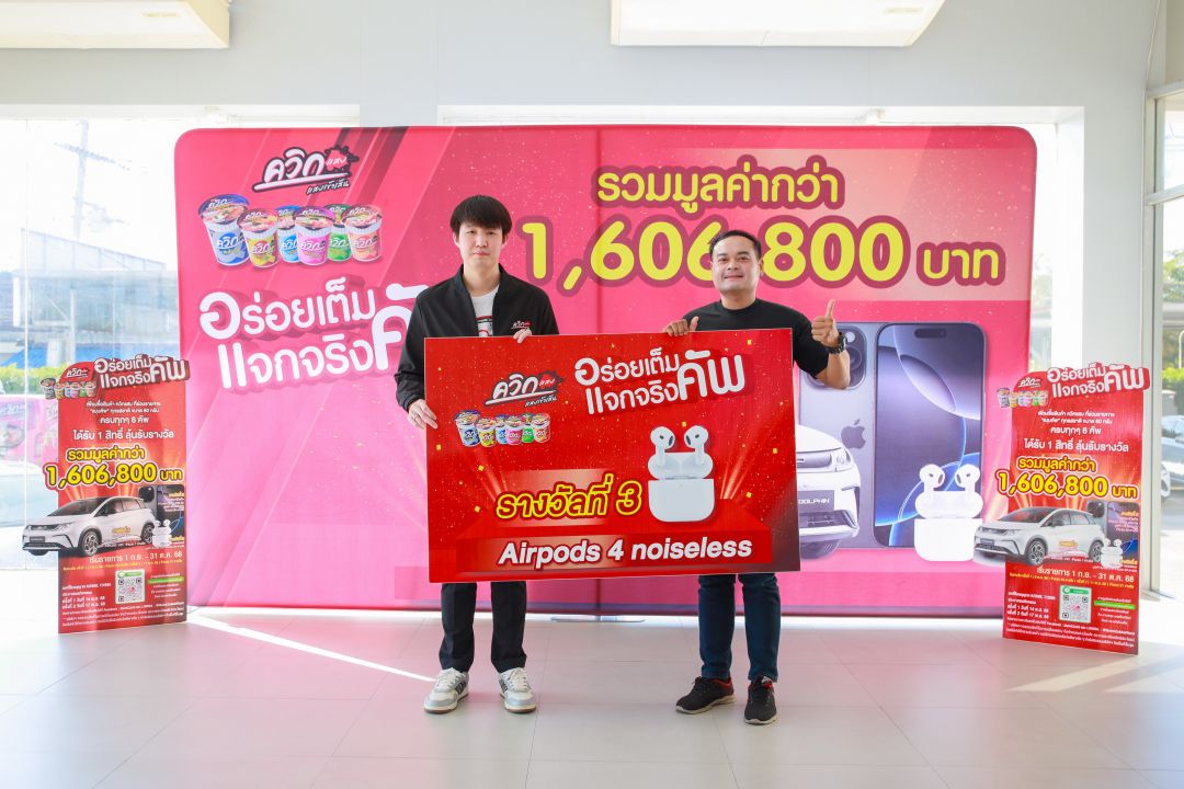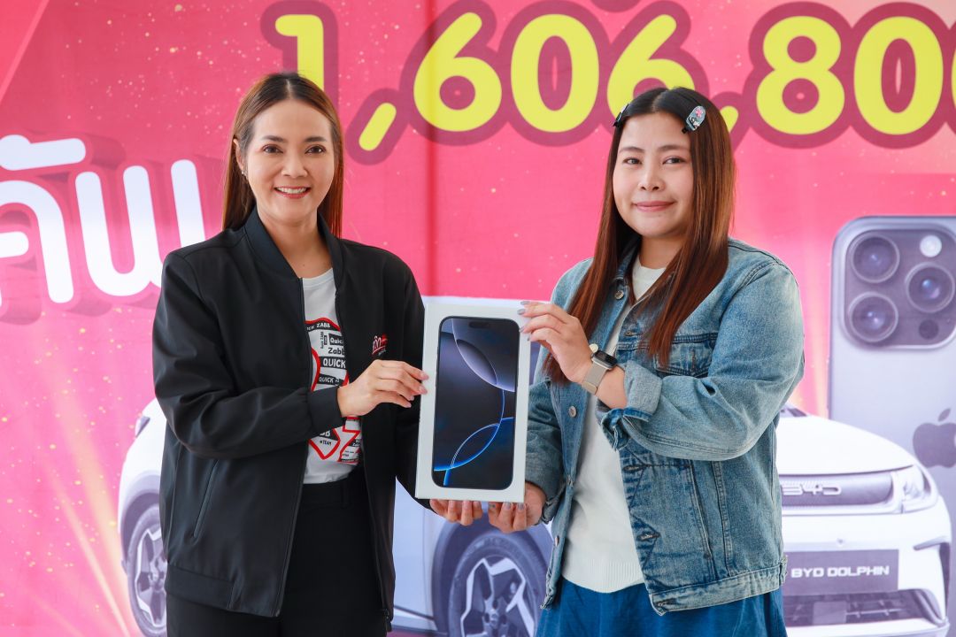 แคมเปญครั้งนี้จัดขึ้นเพื่อคืนกำไรและสร้างความสุขให้ผู้บริโภคของควิกแสบ โดยมอบรางวัลตั้งแต่ AirPods4, iPhone 16 Proไปจนถึงรางวัลใหญ่ที่สุด รถยนต์ไฟฟ้า BYD Dolphin Standard Range งานแจกรางวัลเต็มไปด้วยบรรยากาศตื่นเต้นและความยินดีของผู้บริโภค