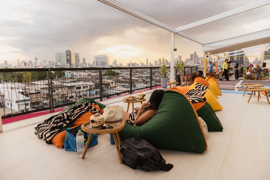 “Three Peas Rooftop Block Party ไม่ได้เป็นเพียงแค่รูฟท็อป แต่คือพื้นที่ที่เชื้อเชิญให้ทุกคนมาค้นพบและแสดงออกถึงตัวตนอย่างอิสระ” พลอย-ชาลิสา เตียนโพธิทอง ผู้ก่อตั้ง The Fig Lobby Bangkok กล่าว