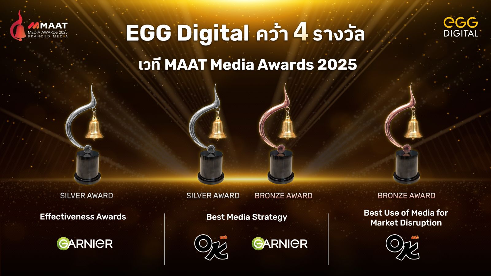 เอ้ก ดิจิทัล (EGG Digital) ตอกย้ำศักยภาพในฐานะผู้ให้บริการสื่อโฆษณาครบวงจรแห่งยุคดิจิทัล คว้า 4 รางวัลจากเวทีสื่อโฆษณาระดับประเทศ “MAAT Media Awards 2025” ได้แก่ รางวัลระดับ Silver 2 รางวัล และ Bronze 2 รางวัล จากแคมเปญ MAMA OK และ Garnier (การ์นิเย่) โชว์ความสามารถในการวางกลยุทธ์การสื่อสารและโฆษณาที่ทรงพลัง ผ่านการผสาน “ดาต้า 720 องศา – AI – ครีเอทีฟ – รีเทลมีเดียเน็ตเวิร์ก” ในรูปแบบ Omnichannel เชื่อมโยงสื่อทุกช่องทางอย่างไร้รอยต่อ สร้างการสื่อสารที่แม่นยำ เข้าถึงผู้บริโภคในทุกทัชพอยท์ พร้อมสร้างโอกาสใหม่และผลลัพธ์ทางธุรกิจที่วัดผลได้ให้กับแบรนด์
