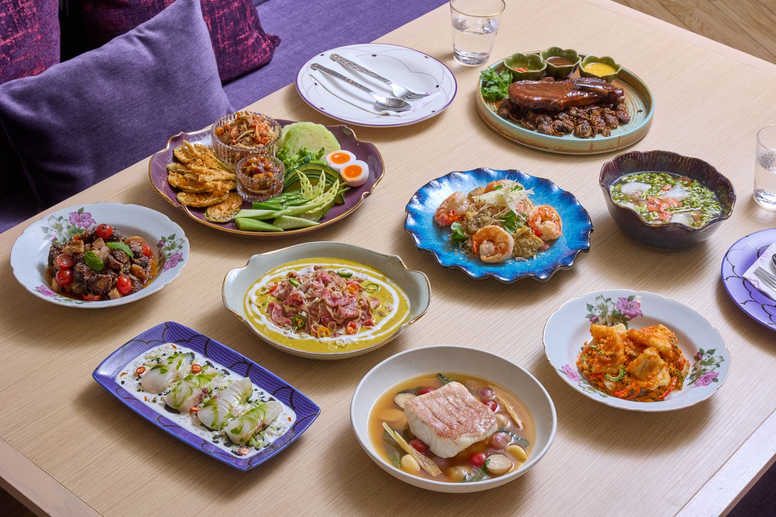 ยำส้มโอสองสายพันธุ์ คัดสรรส้มโอทับทิมสยามและขาวน้ำผึ้ง คลุกเคล้าน้ำยำที่เข้าเครื่อง หอมกระเทียมเผาอย่างโบราณ มาพร้อมกับกับกุ้งลายเสือย่างคำโต และปลาสลิดกรอบเพื่อเปิดต่อมรับอรรถรสในจานถัดไปได้เป็นอย่างดี แกงระแวงปูก้อนและเนื้อน่องลาย แกงไทยโบราณที่เลือนหายไปจากโต๊ะอาหาร ได้ถูกนำกลับมารังสรรค์ใหม่รสชาติคล้ายลูกผสมระหว่างแกงเขียวหวานและแกงกะหรี่แบบไทยมากับเนื้อน่องลายนุ่มละมุนลิ้นหรือปูก้อนให้ลูกค้าเลือกวัตถุดิบที่ชอบ