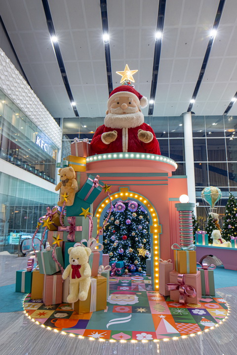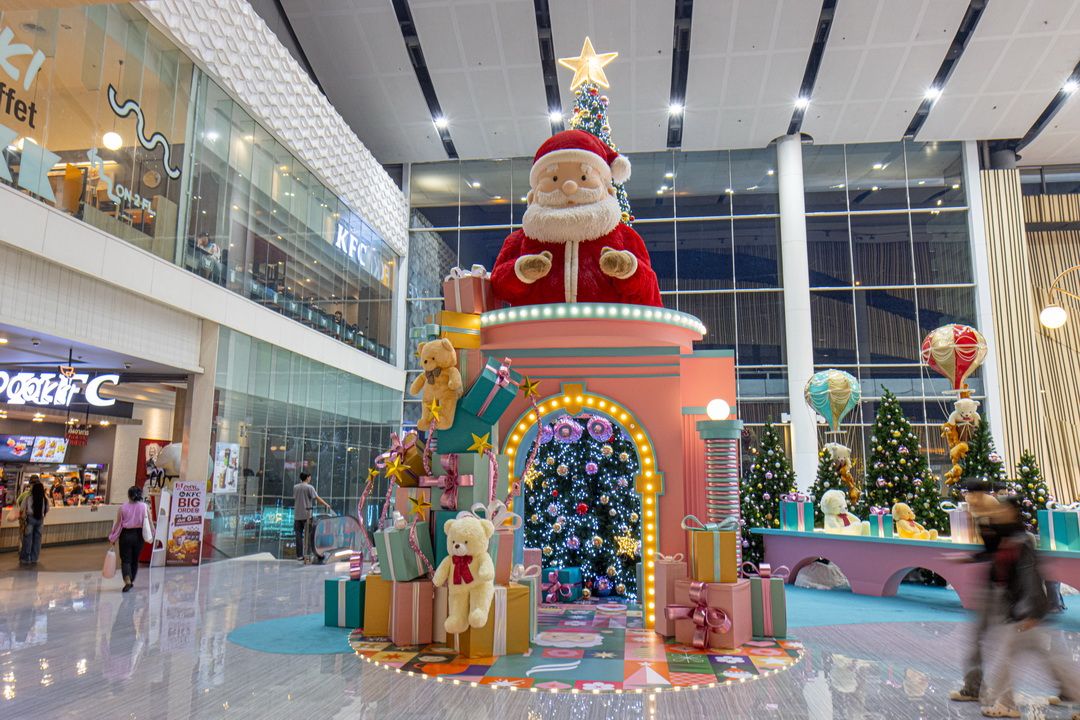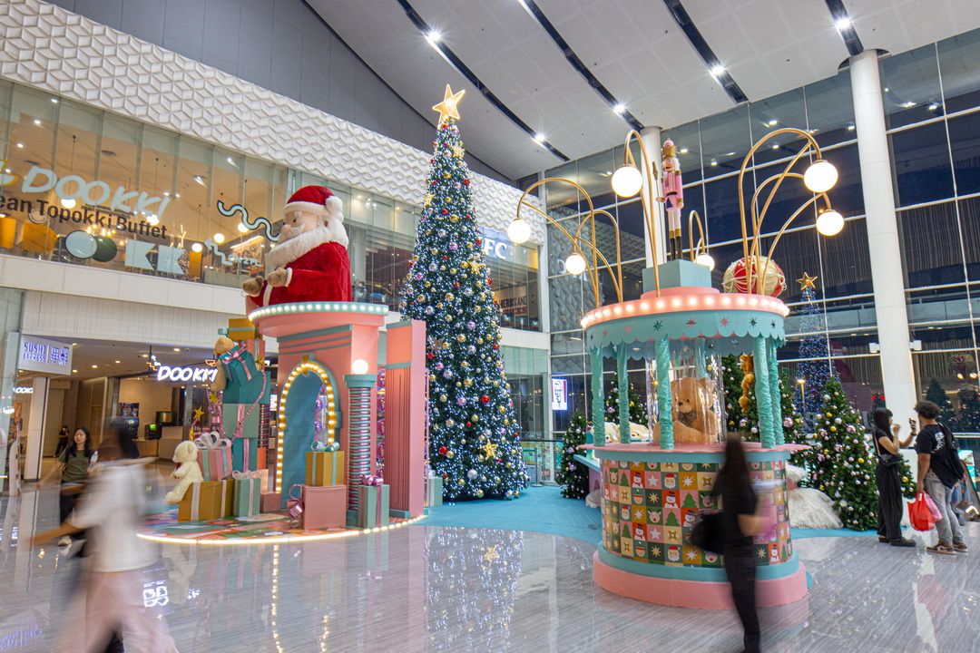 เมื่อเข้าไปด้านใน ความสนุกสนานเริ่มชัดเจนขึ้นเมื่อได้พบกับ ชิงช้าสวรรค์แฟนตาซี ขนาดใหญ่ที่หมุนได้จริง เสียงกลไกเบา ๆ ผสานกับไฟ LED ที่กระพริบเป็นจังหวะสร้างบรรยากาศเหมือนอยู่ในสวนสนุกของซานต้า รอบฐานถูกล้อมด้วยของขวัญหลากสีและเสาโคมไฟเรืองแสงที่ทำให้พื้นที่ดูอบอุ่นและเต็มไปด้วยมนตร์วิเศษของฤดูกาล ถัดไปคือ แคปซูลลำเลียงของขวัญ ที่ถูกออกแบบให้เหมือนเครื่องจักรภายในโรงงานลับของซานต้า ช่องใส่ของขวัญและกลไกจำลองทำให้รู้สึกเสมือนกำลังชมกระบวนการผลิตจริง ช่วยต่อเติมเรื่องราวของโรงงานนี้ให้สมบูรณ์แบบยิ่งขึ้น บริเวณ สายพานผลิตของขวัญ ของขวัญลำเรียง ราวกับกำลังเคลื่อนสู่จุดแพ็กกิ้ง บางช่วงมีเอลฟ์ตัวจิ๋วกำลังทำงานอย่างขะมักเขม้น เพิ่มจินตนาการน่ารักและ น่าประทับใจ สุดท้ายของเส้นทางคือ โซนรถลากซานต้า รถลากสีสดใสตั้งเด่นพร้อมถุงของขวัญใบใหญ่ ข้างกันคือซานต้าคลอสที่รอทักทายผู้มาเยือน พร้อมกับสโนว์แมนตัวกลมที่ยืนต้อนรับท่ามกลางต้นคริสต์มาสหลายต้นประดับไฟสว่างไสว ช่วยเติมเต็มเรื่องราวของ “โรงงานแห่งความสุข” ให้สมบูรณ์แบบ ทั้งยังเป็นมุมถ่ายรูปยอดฮิตที่ผู้มาเยือนสามารถเก็บความประทับใจแบบจัดเต็มในทุกมุมมอง