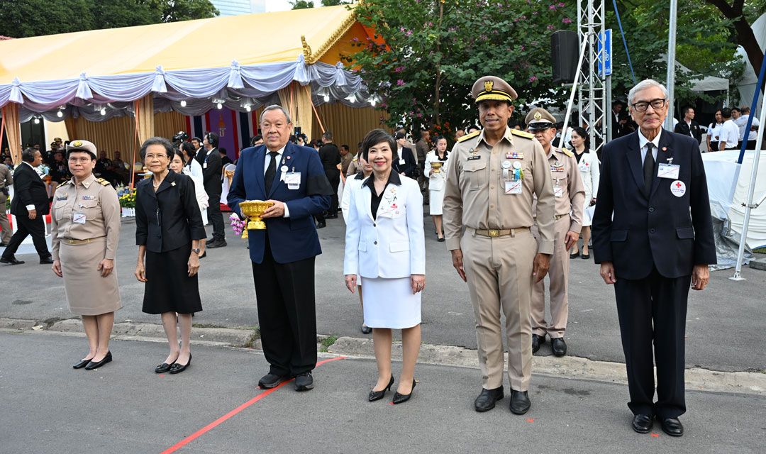 เตช บุนนาค เลขาธิการสภากาชาดไทย ประธานคณะกรรมการอำนวยการจัดงานกาชาดประจำปี 2568 กราบบังคมทูลรายงานวัตถุประสงค์การจัดงานกาชาดประจำปี 2568 และกราบบังคมทูลเบิกผู้ชนะการประกวดและผู้สนับสนุนการจัดงานกาชาดเข้ารับพระราชทานเกียรติบัตร อาทิ ผู้ชนะการประกวดผู้สูงวัยสุขภาพดีประจำปี 2568 จำนวน 7 ราย ผู้ชนะการประกวดสรรหากุลบุตร-กุลธิดากาชาดประจำปี 2568 จำนวน 4 ราย ผู้สนับสนุนการจัดงานกาชาด จำนวน 20 ราย รวมถึงหน่วยงานที่ร่วมออกร้านกาชาดและผู้มีจิตศรัทธา เข้าเฝ้าฯ ทูลเกล้าฯ ถวายเงินโดยเสด็จพระราชกุศลบำรุงสภากาชาดไทย สมทบงานกาชาดประจำปี 2568 จำนวน 30 ราย