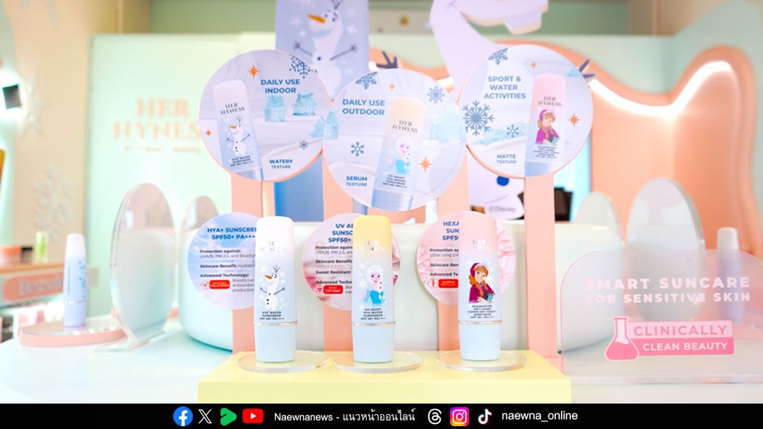 HER HYNESS (เฮอ ไฮเนส) แบรนด์คลีนบิวตี้ ระดับพรีเมียมสัญชาติไทย สร้างหมุดหมายสำคัญในระดับสากลด้วยการเปิดตัว “HER HYNESS Frozen Collection” คอลเลกชันกันแดดลิมิเต็ดเอดิชัน ที่เกิดจากความร่วมมือกับ Disney พาร์ตเนอร์ระดับโลกด้านความบันเทิง นับเป็นครั้งแรกที่แบรนด์นำแรงบันดาลใจจากภาพยนตร์แอนิเมชันที่ได้รับความนิยมอย่างสูง Disney’s Frozen มาถ่ายทอดสู่ผลิตภัณฑ์กันแดด ซึ่งเป็นไอเทมที่ครองยอดขายสูงสุดอย่างต่อเนื่อง เพื่อร่วมเฉลิมฉลองเทศกาลส่งท้ายปีอย่างงด งามและยิ่งใหญ่ ถือเป็นก้าวสำคัญที่ตอกย้ำถึงความมุ่งมั่นของ Her Hyness ในการสร้างสรรค์ผลิตภัณฑ์คุณภาพสูงที่ผสานนวัต กรรมและความงามระดับสากล