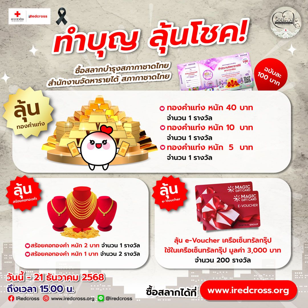 ขอเชิญชวนประชาชนทุกท่านร่วมเป็นส่วนหนึ่งของงานกาชาดประจำปี 2568 ทั้งที่สวนลุมพินีและผ่านแพลตฟอร์มออนไลน์ www. iredcross.org ซึ่งเปิดให้ร่วมทำบุญออนไลน์ สนับสนุนภารกิจช่วยเหลือผู้เดือดร้อนทั่วประเทศ พร้อมสนุกกับกิจกรรมงานกาชาดในรูปแบบดิจิ ทัลอย่างครบวงจร อาทิ การเที่ยวงานกาชาดออนไลน์กับ “น้องไอจัง” และบริการ “ดูดวงออนไลน์งานกาชาด 2568” จาก 4 สมาคมโหรา ศาสตร์ชั้นนำที่เปิดให้จองคิวและรับคำพยากรณ์ได้ตลอดช่วงจัดงาน