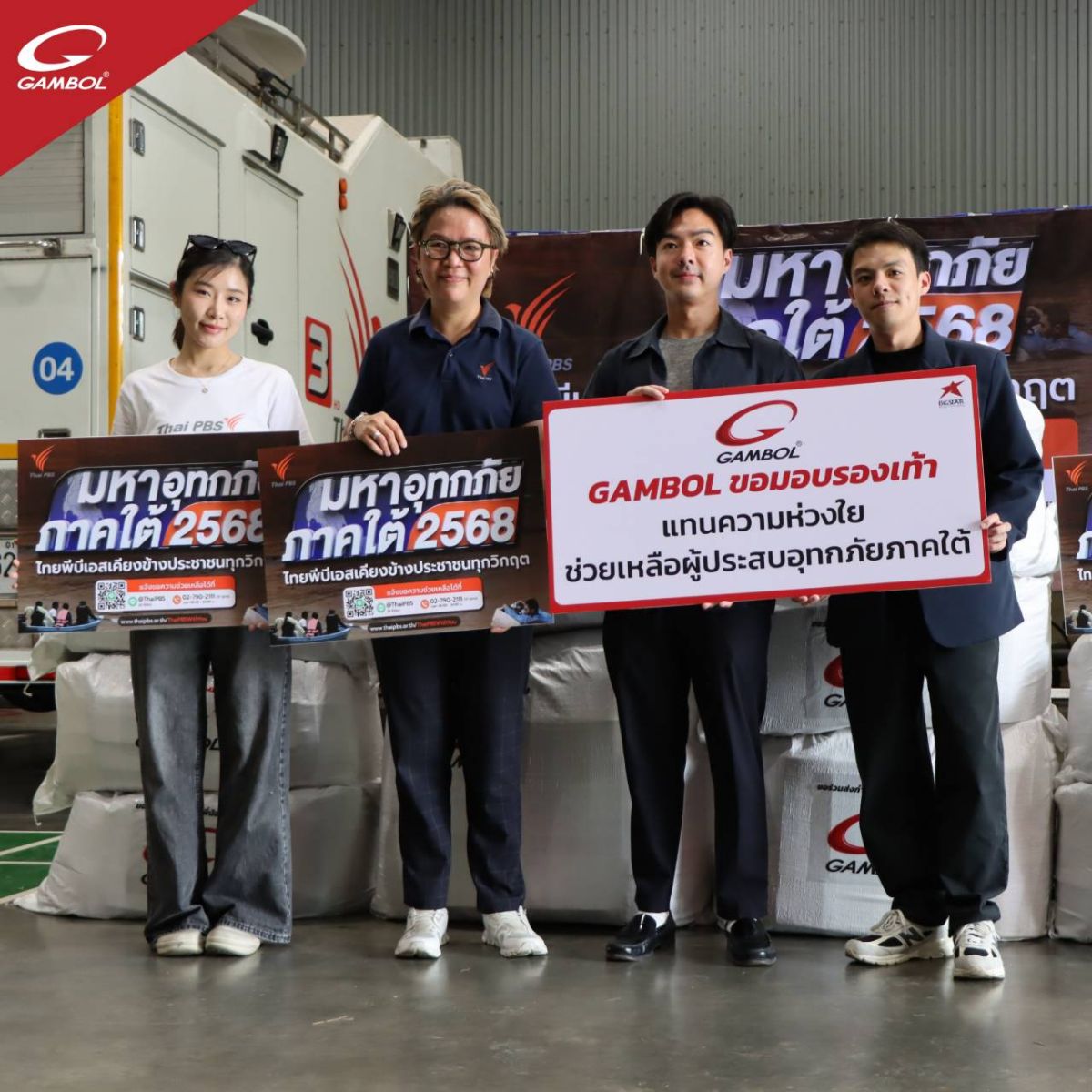 การส่งมอบรองเท้าครั้งนี้เป็นส่วนหนึ่งของเจตนารมณ์ในการดำเนินงานตามแนวทางของ GAMBOL ที่มุ่งเน้นการส่งเสริมสังคมไทยให้น่าอยู่และยั่งยืน พร้อมช่วยเหลือผู้ที่ได้รับผลกระทบในยามวิกฤต ทางบริษัทฯ หวังเป็นอย่างยิ่งว่ารองเท้าที่ส่งมอบให้ไปจะช่วยอำนวยความสะดวกและเยียวยาจิตใจให้กับผู้ประสบภัยในพื้นที่น้ำท่วม และช่วยให้ทุกคนเดินหน้าก้าวต่อไปได้อย่างมั่นคง โดย “GAMBOL ขอเป็นอีกหนึ่งกำลังใจ เคียงข้างพี่น้องชาวใต้ในทุกก้าวแห่งการฟื้นฟู”