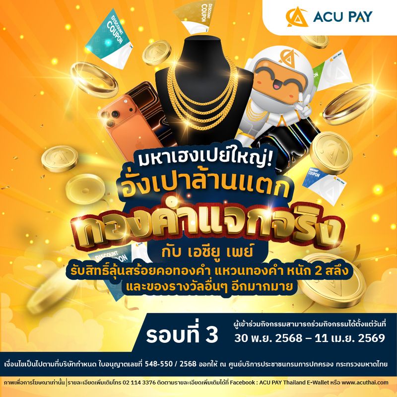 ล่าสุด ในงานจับรางวัลผู้โชคดี แคมเปญ มหาเฮงเปย์ใหญ่! อั่งเปาล้านแตกทองคำแจกจริง กับ ACU PAY ครั้งที่ 2 ที่จัดขึ้น ณ สำนักงานใหญ่ ACU PAY (Thailand) ถ.รัชดาภิเษก เมื่อเร็ว ๆ นี้ โดยนางสาวหยาง หยวนหยวน (Caro) ประธานบริษัท เอซียู เพย์ (ไทยแลนด์) จำกัด และนายรองนะรงค์ ศศิพงศ์พรรณ กรรมการบริษัท / CEO บริษัท เอซียู เพย์ (ไทยแลนด์) จำกัด เป็นผู้จับรางวัล และได้รับเกียรติจาก คุณกฤษฎิ์ณิชา ไชยเสนบดินทร์ เจ้าพนักงานปกครองชำนาญการกรมการปกครอง กระทรวงมหาดไทย มาร่วมเป็นสักขีพยานในครั้งนี้ ด้าน นายรองนะรงค์ ศศิพงศ์พรรณ กรรมการบริษัท / CEO บริษัท เอซียู เพย์ (ไทยแลนด์) จำกัด ได้กล่าวถึงทิศทางการเติบโตทางธุรกิจให้ตอบโจทย์กับความต้องการของผู้ใช้งานยุคใหม่ว่า “แม้เศรษฐกิจอาจชะลอตัว แต่สังเกตว่าพฤติกรรมผู้บริโภคคนไทยเริ่มให้ความสำคัญกับความคุ้มค่าของการใช้จ่าย มากกว่าที่เคยเป็นมา สิ่งนี้ถือเป็นโอกาสของ ACU PAY ที่จะทำหน้าที่ ที่ไม่ใช่แค่แพลตฟอร์มการจ่ายเงิน แต่เป็น ตัวช่วยประหยัด ช่วยให้คนไทยใช้จ่ายอย่างมีคุณค่าผ่านคูปอง สิทธิพิเศษ และการร่วมมือกับร้านค้าพาร์ทเนอร์ทั่วประเทศ พร้อมกันนั้น เรายังต่อยอดให้เป็นโอกาสทางธุรกิจสำหรับร้านค้าไทยผ่านระบบที่ทำให้ร้านค้าสามารถเข้าถึงผู้บริโภคได้เร็วขึ้น และสร้างยอดขายได้อย่างมีประสิทธิภาพมากขึ้นในยุคเศรษฐกิจที่ทุกคนต้องคิดก่อนใช้จ่าย สำหรับการกลับมาของแคมเปญ มหาเฮงเปย์ใหญ่! อั่งเปาล้านแตกทองคำแจกจริง กับ ACU PAY ครั้งที่ 2 นี้ถือเป็นเครื่องตอกย้ำว่า ACU PAY เดินเกมได้ตรงจุดมากขึ้น เนื่องจากกระแสตอบรับดีเกินคาด ซึ่งครั้งนี้ มีการจับรางวัลลุ้นรับรางวัลใหญ่อย่าง สร้อยคอทองคำ หนัก 2 สลึง จำนวน 4 รางวัล รวมมูลค่า 102,000 บาท, แหวนทองคำ หนัก 2 สลึง จำนวน 2 รางวัล รวมมูลค่า 50,000 บาท, iPhone 17 รุ่น Pro Max ขนาด 1TB มูลค่ารางวัลละ 64,900 จำนวน 2 รางวัล รวมมูลค่า 129,800 บาท, iPad Pro รุ่น 11 นิ้ว (M5) Wi-Fi + Cellular ขนาด 512 GB มูลค่า 49,900 บาท, Apple Pencil (USB-C) มูลค่า 2,990 บาท รวมมูลค่า 52,890 บาท จำนวน 1 รางวัล