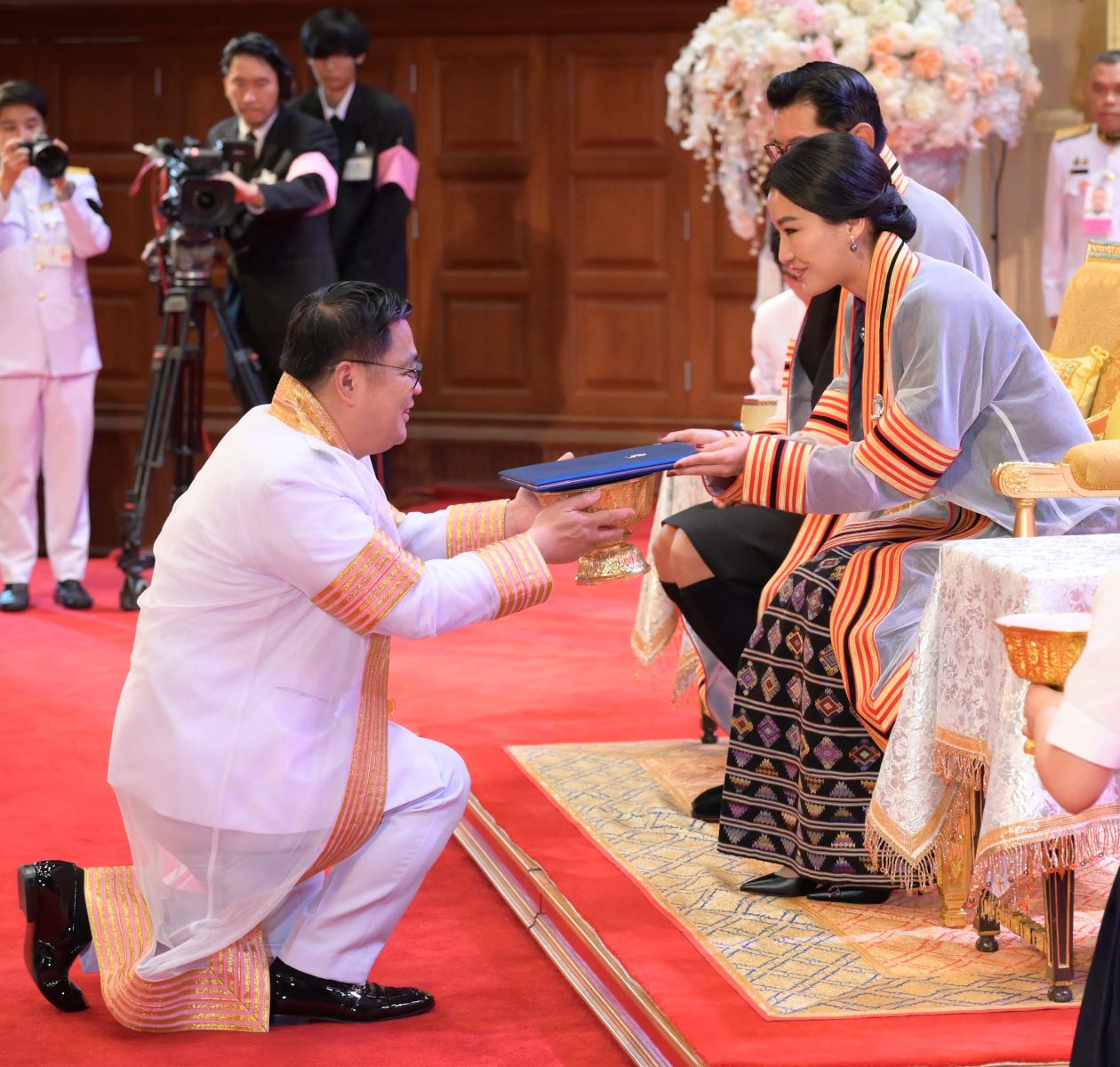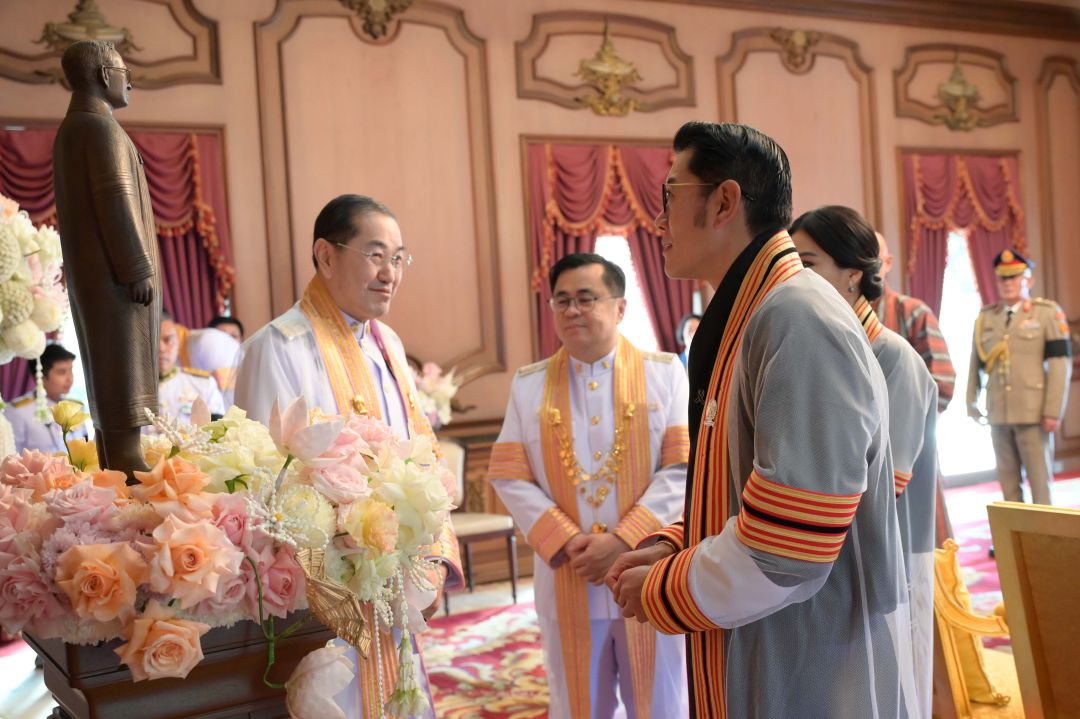 สมเด็จพระราชาธิบดีจิกมี เคเซอร์ นัมเกล วังชุก และสมเด็จพระราชินีเจตซุน เพมา วังชุก แห่งราชอาณาจักรภูฏานเสด็จจุฬาลงกรณ์มหาวิทยาลัย เพื่อทรงรับการทูลเกล้าฯ ถวายปริญญาดุษฎีบัณฑิตกิตติมศักดิ์ โดยมี ศ. (พิเศษ) ดร.สุรเกียรติ์ เสถียรไทย นายกสภาจุฬาลงกรณ์มหาวิทยาลัย ศ.ดร.วิเลิศ ภูริวัชร อธิการบดีจุฬาฯ พร้อมด้วยผู้บริหารมหาวิทยาลัย และนิสิตภูฏานที่ศึกษาอยู่จุฬาลงกรณ์มหาวิทยาลัยเฝ้าฯ รับเสด็จ เมื่อวันที่ 22 ธันวาคม 2568 เวลา 10.00 น. ณ หอประชุมจุฬาลงกรณ์มหาวิทยาลัย